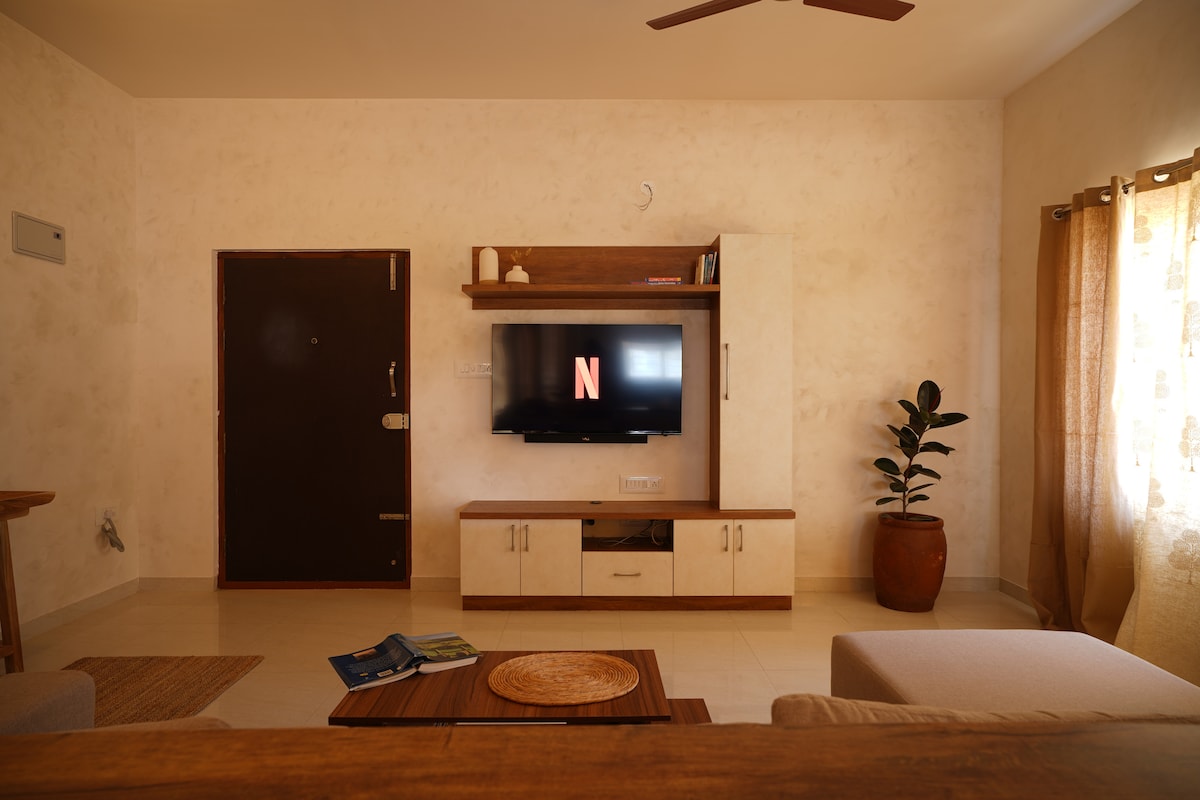 Bienvenido a un 1BHK prémium diseñado para parejas y cualquier persona que quiera regalarse unas vacaciones de lujo cerca de Manyata Tech Park. Cuidadosamente seleccionado con una rica estética boho, iluminación cálida y decoración elegante, Amavi no es solo una estancia: es una experiencia. Ya sea que estés planeando una escapada romántica, celebrando una ocasión especial o simplemente disfrutando del cuidado personal, este espacio está diseñado para hacer que cada momento se sienta especial.