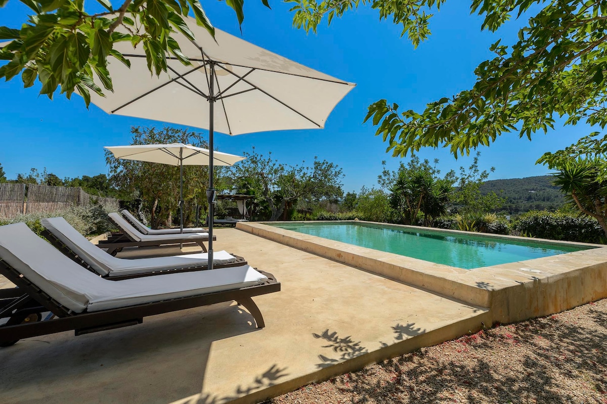 Escápate a la tranquilidad de esta encantadora villa rural situada entre San Mateu y Santa Gertrudis. Rodeado de exuberantes árboles frutales, el jardín cuenta con una acogedora piscina infinita con impresionantes vistas a las idílicas colinas de San Mateu. Experimenta la serenidad pura en este oasis de paz, a solo 5 minutos en coche del vibrante corazón de Santa Gertrudis, famoso por su deliciosa variedad de restaurantes. Y con la ciudad de Ibiza a solo 20 minutos en coche, disfrutarás de un fácil acceso a todo lo que ofrece la isla.