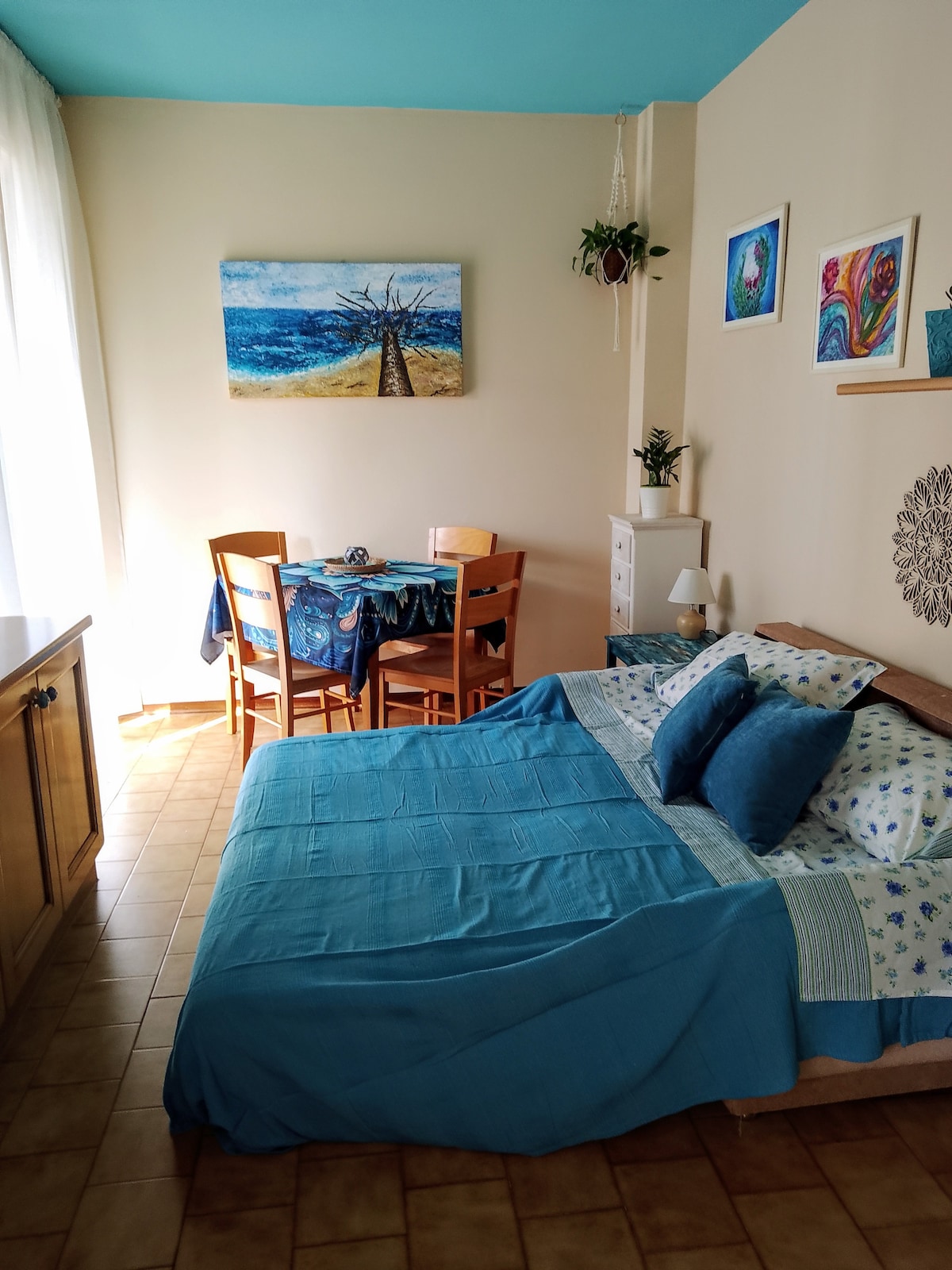 Luminoso appartamento a pochi passi dal mare, in zona residenziale, dotato di ampia camera matrimoniale con Smart Tv e Netflix, cucina attrezzata, elegante salottino con TV, spazioso terrazzo arredato, wi-fi, parcheggio gratuito in zona, situato al 3°p. senza ascensore.
