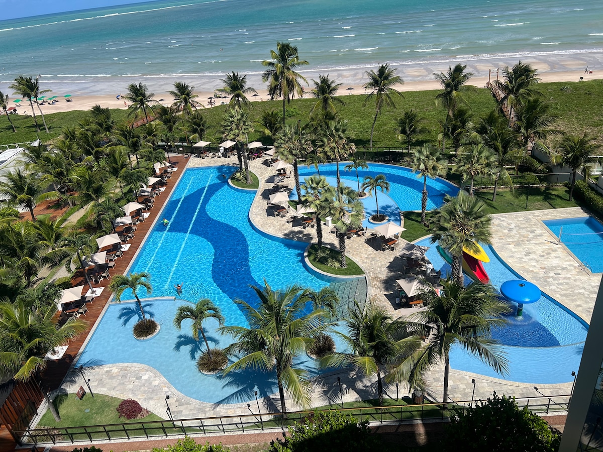Apartamento Lindo, cómodo, renovado, decorado y amueblado en Residencial Paraíso do Atlântico, con estructura TOP, a pie de la playa de CAMPINA Trae a tu familia a relajarse y divertirse con una vista privilegiada, posición naciente, ventilada, espaciosa teniendo: -1 suite con cama tamaño queen -1 recamara con 2 camas individuales -1 sofá cama QUEEN en la sala de estar Hilos Enxoval Standard 300 100 % algodón Arena Fest Summer, cerca del parque marino de arena roja y la playa de Jacaré