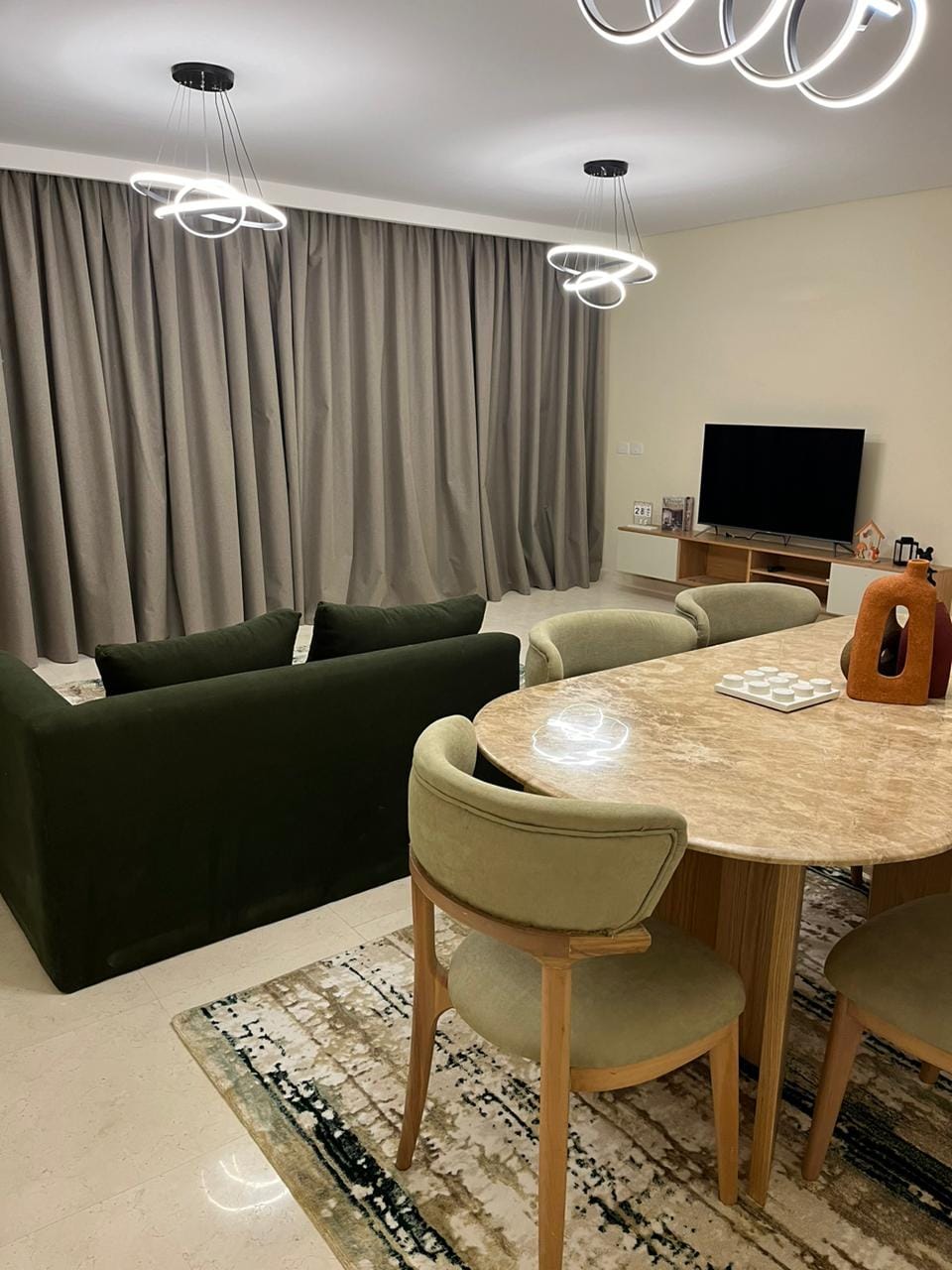Welcome to Your Luxurious Retreat! Discover our beautifully furnished three-bedroom apartment in One Kattameya Compound. Enjoy the master suite with a private bathroom and two spacious queen bedrooms. The fully equipped kitchen and inviting living room offer the perfect setting for relaxation. Just a short walk to a convenience store and coffee shop, and conveniently located near the Ring Road for easy access to all of Cairo. Book now for comfort and elegance in our stunning city!