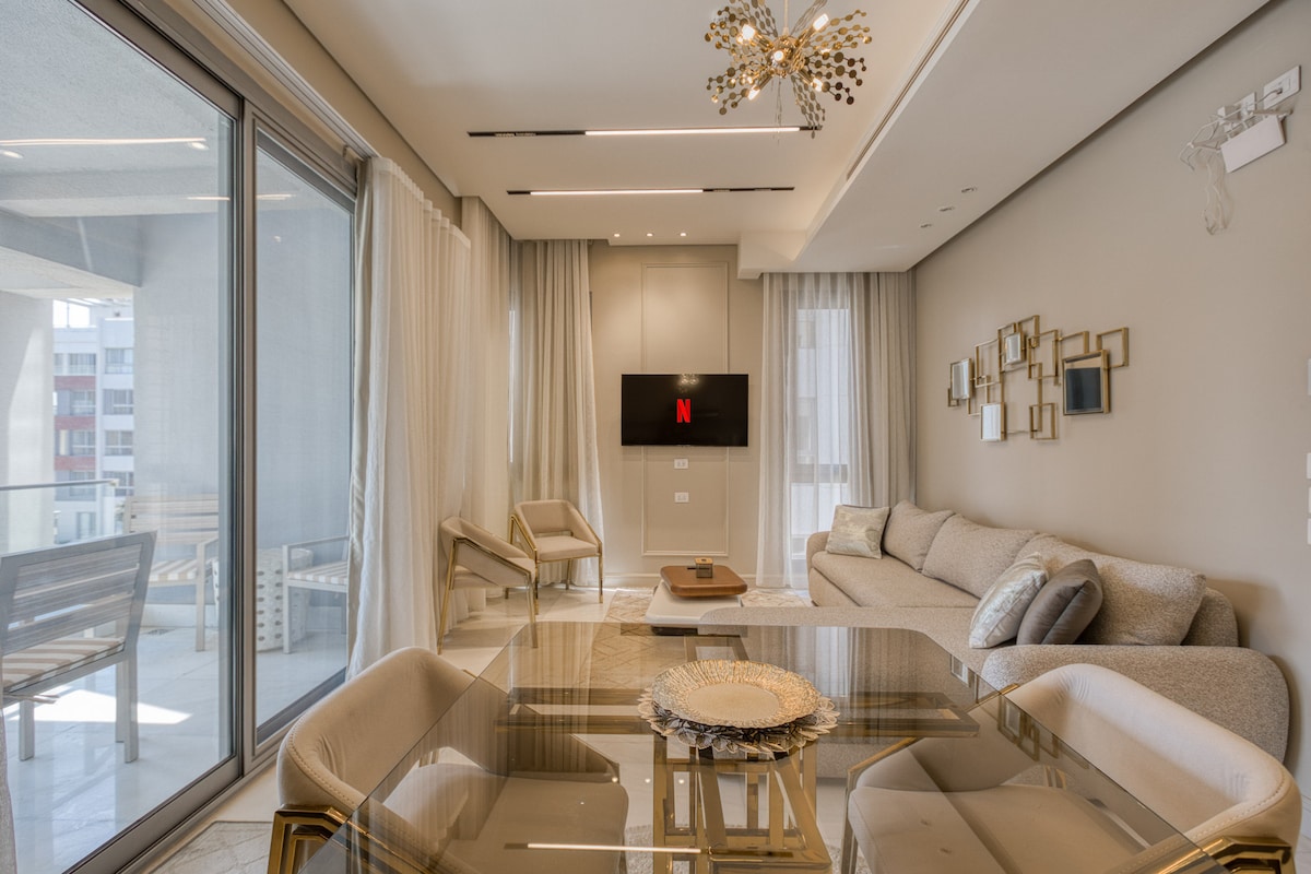Este espacioso apartamento está totalmente amueblado y equipado con todo lo necesario para una estancia cómoda. Relájate y ve tus películas y programas de televisión favoritos en el sistema de sonido con acceso a Netflix, beIN Sports, Shahid, Watch it y Starzplay. Ubicado en una ubicación céntrica, cerca de todas las principales atracciones. A poca distancia a pie de la estación de autobuses, las tiendas y los restaurantes. Tanto si viajas por negocios como por placer, este moderno y elegante apartamento es el alojamiento perfecto.