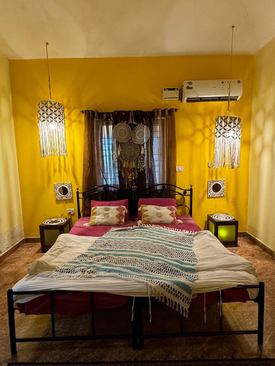 Mandre House by Artios Stays – Privado junto a la playa 2BHK Bienvenido a Mandre House by Artios Stays, una encantadora y completamente privada casa de 2BHK junto a la playa, ubicada a pocos pasos de las serenas costas de Mandrem Beach en el norte de Goa. Diseñado cuidadosamente para la comodidad y la relajación, este alojamiento es ideal para familias, parejas y grupos pequeños que buscan disfrutar de unas tranquilas vacaciones en la playa mientras se alojan cerca de cafeterías populares y atracciones locales.
