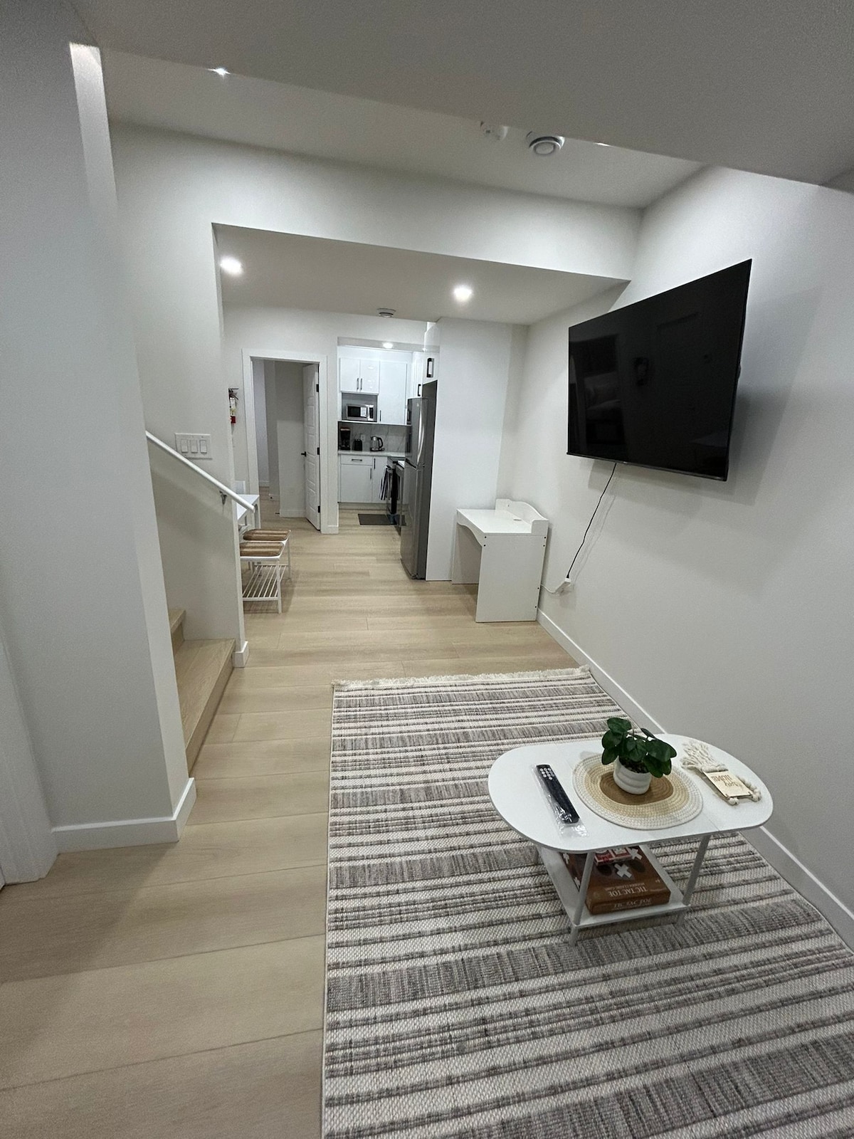 El elegante sótano de 2 dormitorios es un refugio privado y meticulosamente cuidado que ofrece un confort refinado y un lujo tranquilo. Disfruta de cálidas noches junto a la chimenea y de la abundante luz natural de los grandes ventanales. Esta espaciosa suite de dos dormitorios cuenta con una cama tamaño queen y una cama doble ideal para los huéspedes que valoran la privacidad, la limpieza y un elevado nivel de confort. Se incluye acceso directo al patio trasero y aparcamiento exclusivo en la entrada. A pocos pasos de los senderos del río Bow, Sobeys, Seton YMCA y el Hospital South Health Campus.