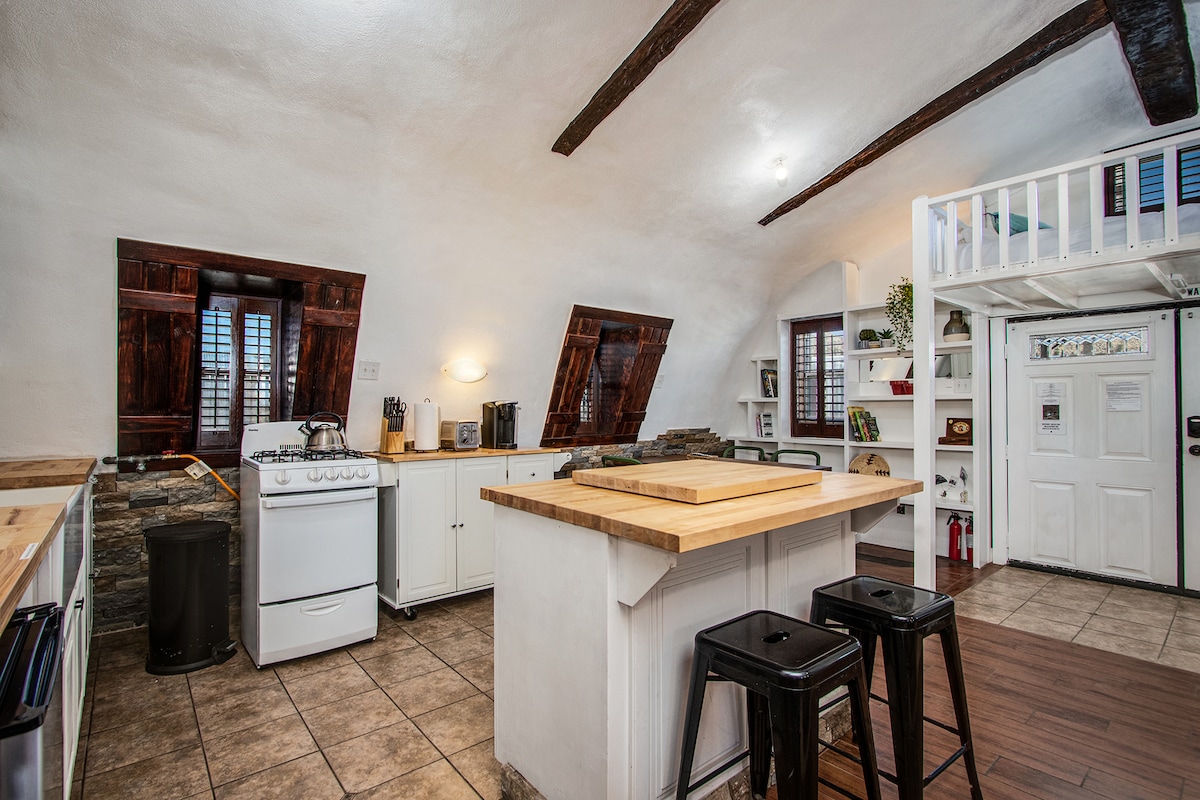 Nutre tu alma en la naturaleza en este espacioso dormitorio de arriba en un rancho privado con una vista fantástica. Con una gran terraza privada, bajo los grandes robles viejos, sentirás una sensación de tranquilidad al poner un pie en esta propiedad sagrada. Excelente ubicación. Visita a la granja disponible. Hay wifi disponible. Roku TV, que es compatible con Netflix, Prime Amazon y YouTube. La pequeña cocina tiene una cafetera Keurig, microondas, horno tostador, placa calefactora y nevera pequeña. Se ofrece desayuno continental.