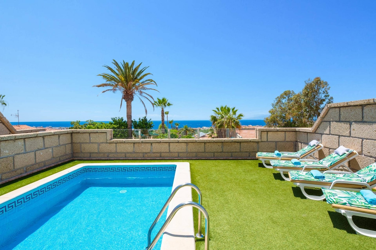 Villa que cuenta con tres habitaciones, dos baños, salón-cocina amplios y un precioso jardín con piscina no climatizada. En el sur de Tenerife hace calor todo el año por lo que la piscina se puede usar siempre, sin necesidad de estar climatizada. En la villa hay wifi y todas las comodidades necesarias para una estupenda estancia. En el salón y en todas las habitaciones excepto en una hay aire acondicionado, la que no tiene aire acondicionado tiene ventilador manual.