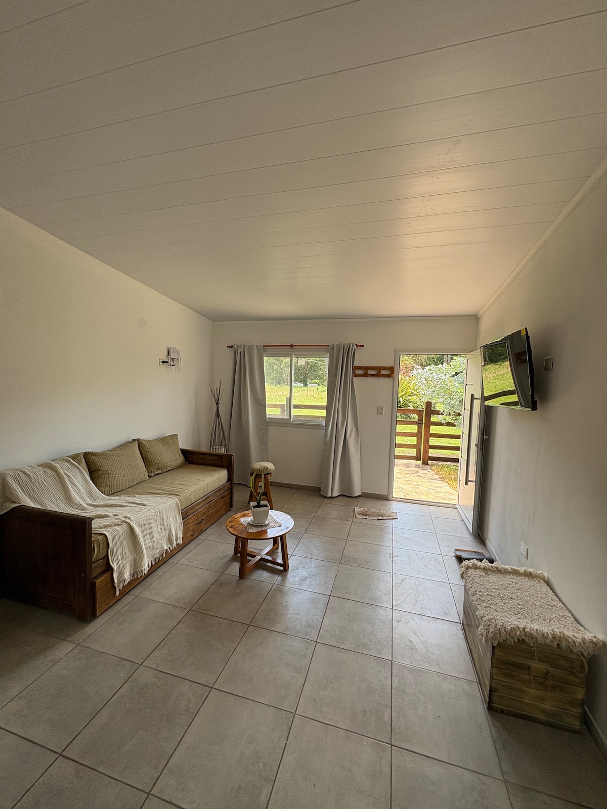 Refugio rústico Escápate a esta cálida cabaña de madera, ideal para desconectar en medio de la naturaleza. Cuenta con cocina equipada, dormitorio acogedor con grandes ventanales, baño funcional. Disfruta de WiFi, televisión con Netflix y parrilla para asados. Aunque no tiene estacionamiento propio, el auto se puede dejar afuera. Perfecta para parejas o familias que buscan un espacio tranquilo y cómodo en contacto con la naturaleza. ¡Te esperamos!