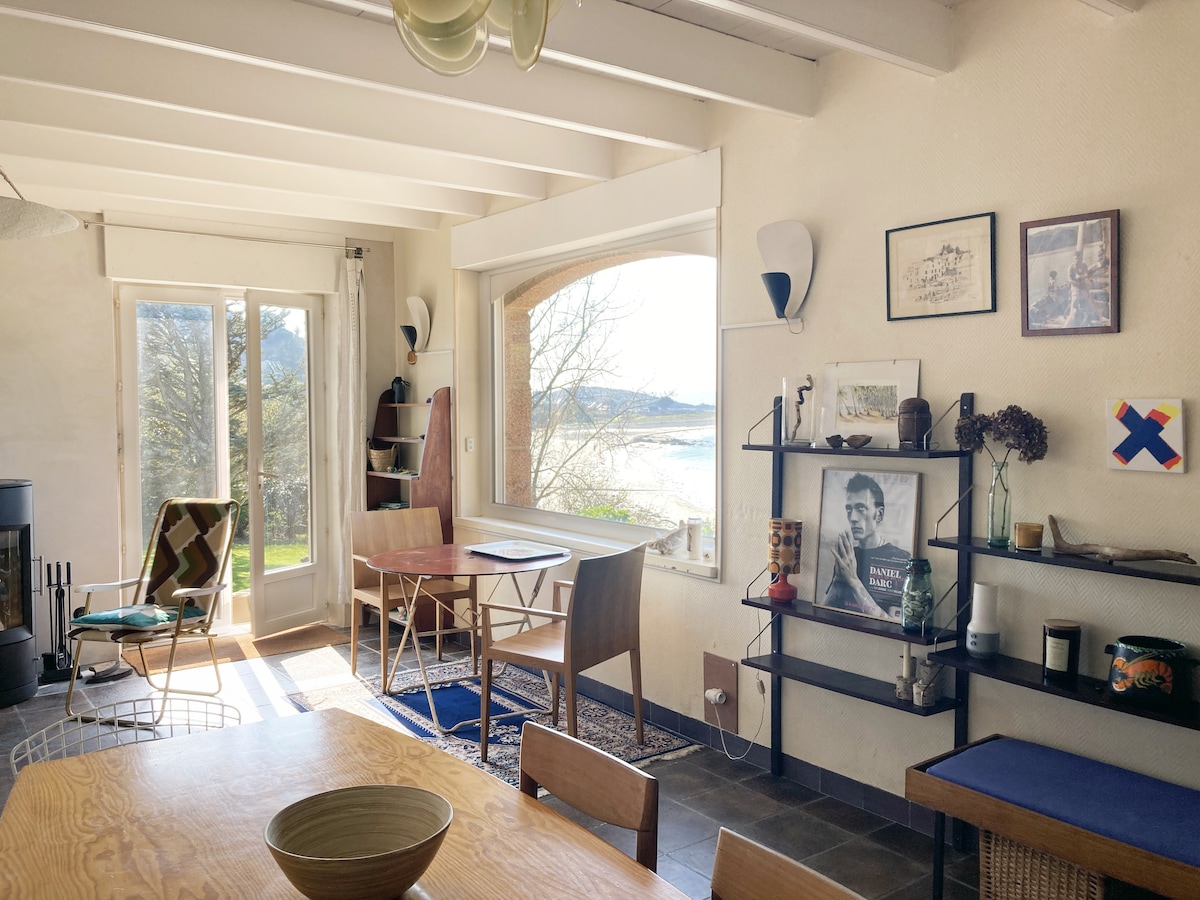 Wide angle on the sea for this exceptional apartment with breathtaking views located on the 1st floor of a former seaside hotel overlooking the beach of Trestraou and the Archipelago of the 7 islands. A little paradise under the palm trees! Private access to the beach and direct to the coastal path If your dates are already reserved, we offer you an apartment on the 5th floor / le5emecielperros on this site Please exchange with the "contact the host" tab for more info A setting out of the world!