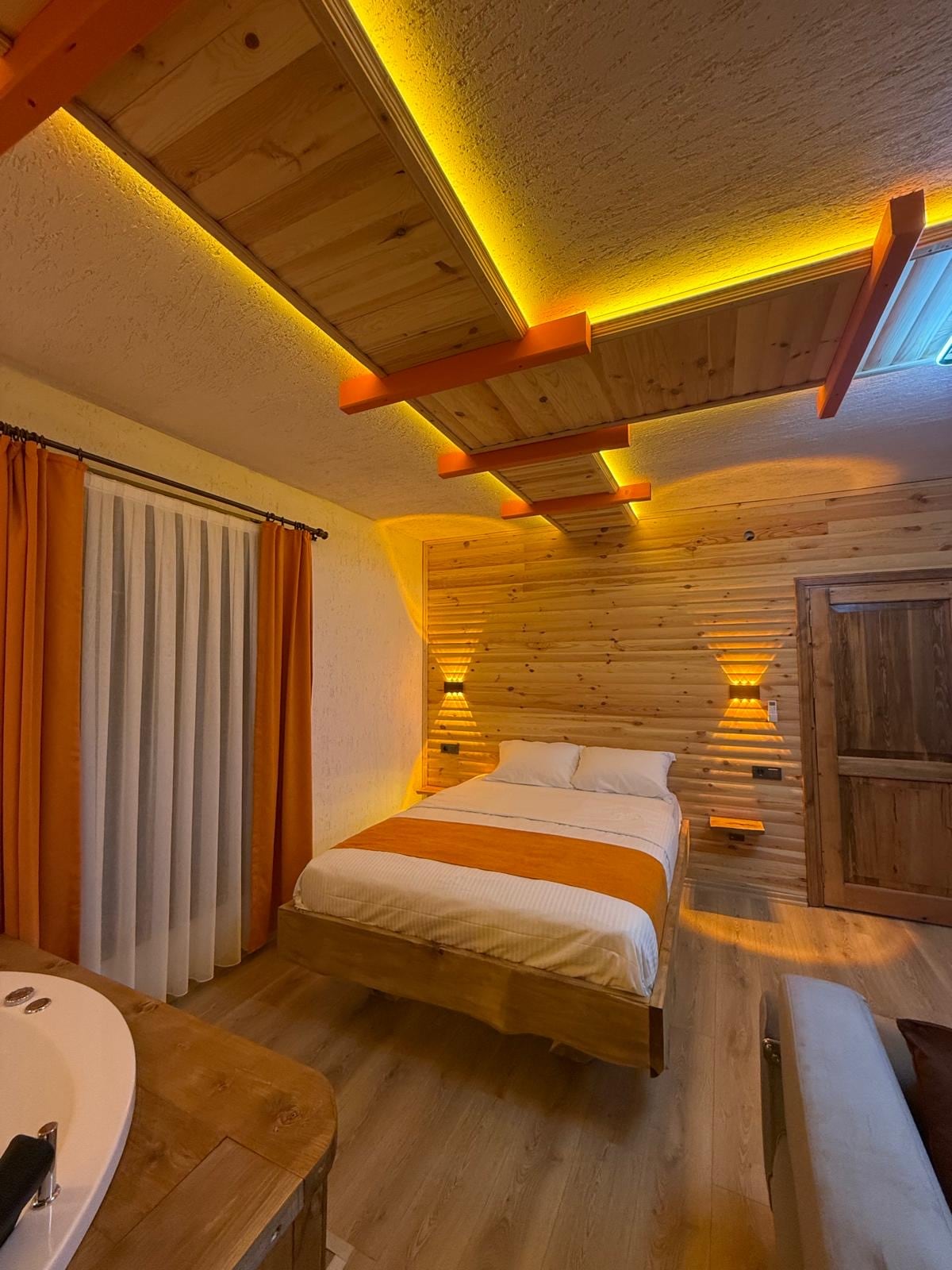 Estas habitaciones de cocina Mcora están diseñadas en una estructura dúplex. Hay una cama individual abajo y una cama doble arriba. También hay servicios como mininevera y hervidor de agua en la habitación. Nuestras habitaciones han sido cuidadosamente preparadas para ustedes, nuestros estimados huéspedes. Puedes dormir cómodamente con el efecto relajante de la madera, y cuando te despiertes, puedes comenzar el día fresco con el aire limpio de la montaña. Nuestro restaurante está disponible, puedes desayunar y cenar por un cargo adicional...