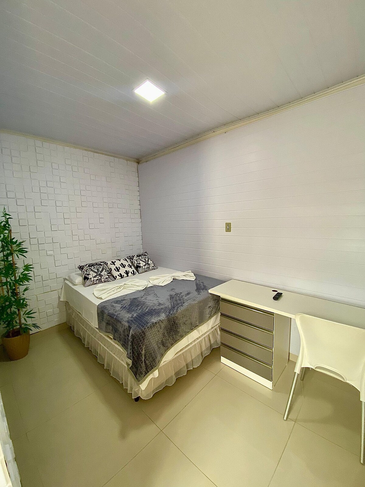 Suite amueblada, acogedora y luminosa, ideal para aquellos que buscan comodidad y practicidad. Ubicado en el barrio de Santa Cruz en Campina Grande, zona tranquila y segura, cerca de mercados, farmacias y transporte público. Tiene cama, TV, aire acondicionado, wifi y baño privado. Perfecto para estudiantes, profesionales o viajeros que valoran un entorno tranquilo y funcional.