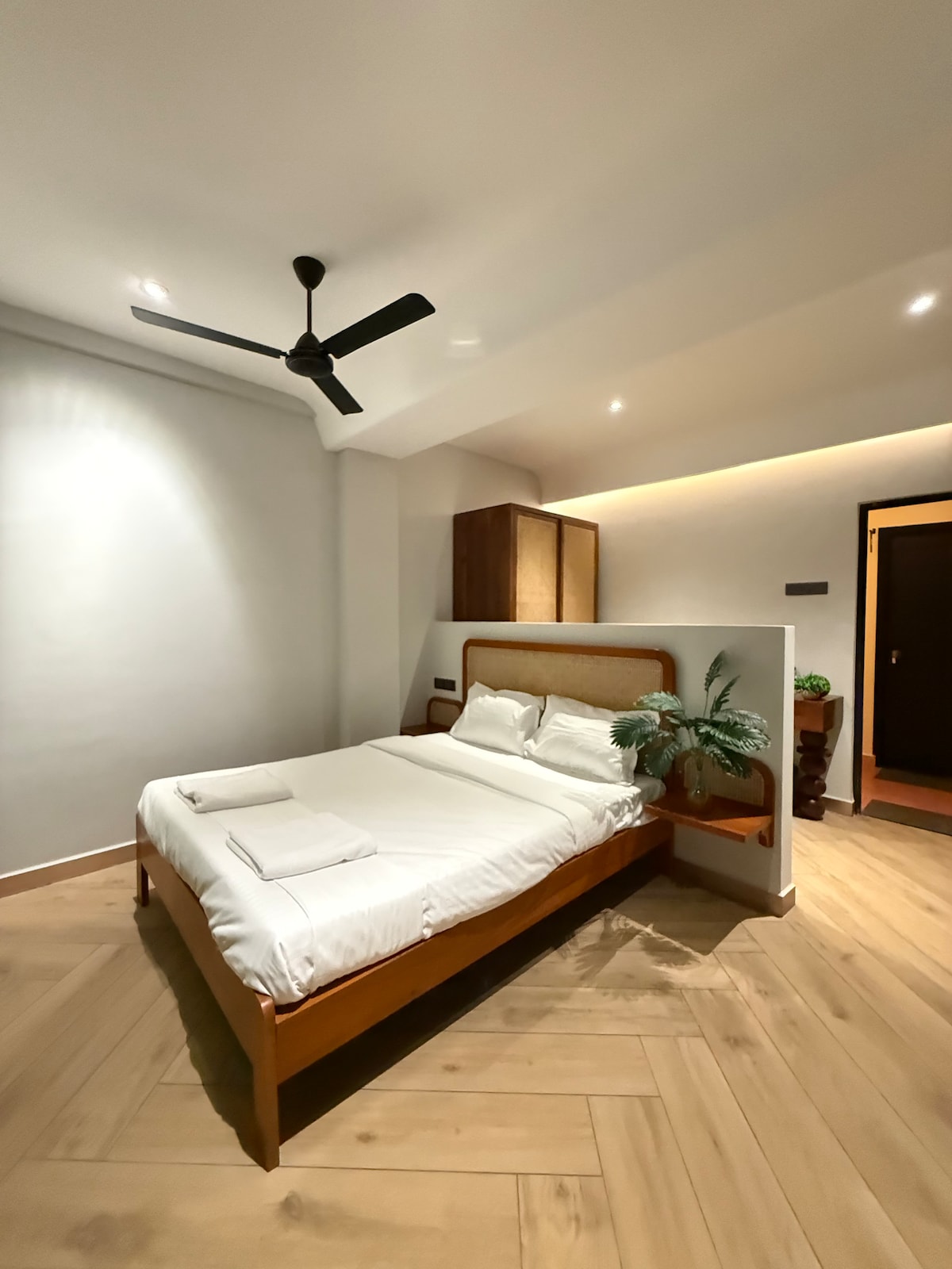 El alojamiento en nuestra propiedad con función de la revista proporciona una escapada tranquila a nuestros clientes. Nuestras habitaciones muestran la arquitectura de estilo Goa, con techos de tejas, paredes de ladrillo chira tradicionales y muebles de fabricación local, mientras que los jardines y la vegetación de los alrededores te hacen sentir la naturaleza. Alojándote aquí, disfrutarás de una escapada desenchufada y sin preocupaciones. Proporcionamos Wi-Fi en caso de que necesites mantenerte conectado y entretenido. Pasa el tiempo ocioso sentado en tu porche o en el jardín