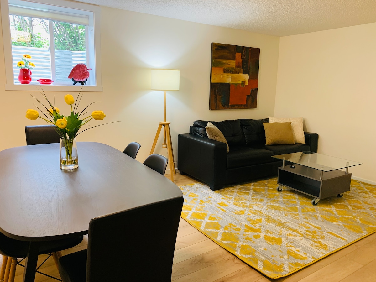 Escápate a nuestra renovada suite privada de 2 dormitorios en el tranquilo barrio de Sherbrooke de Edmonton, perfecta para 6 huéspedes. Disfruta de una entrada privada, una cocina americana y un hermoso jardín compartido en el patio trasero. Con aparcamiento gratuito en la calle y una ubicación céntrica a pocos minutos del distrito 124 St., Rogers Place y el transporte público principal, es la base ideal para trabajar, estudiar o explorar la "ciudad festivalera" de Canadá. Te espera un alojamiento acogedor y bien equipado lejos de casa.