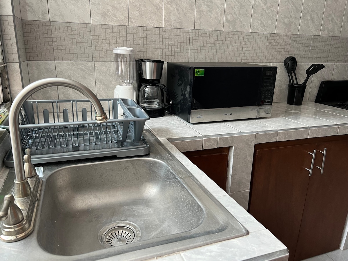 Departamento muy bien ubicado, dos cuartos (1 queen y 2 individuales), los dos con aire acondicionado minisplit, cocina completa, cómoda sala con pantalla, roku y wifi. Cuenta con comedor y barra. Ubicado a una cuadra y media del palacio municipal y de la plaza principal llamada "Plaza de armas". Además de estar rodeado de bancos, estacionamientos, supermercados, restaurantes y demás comercios. Muy cerca de atractivos turísticos como la antigua aduana, el nuevo mercado, la catedral, etc.