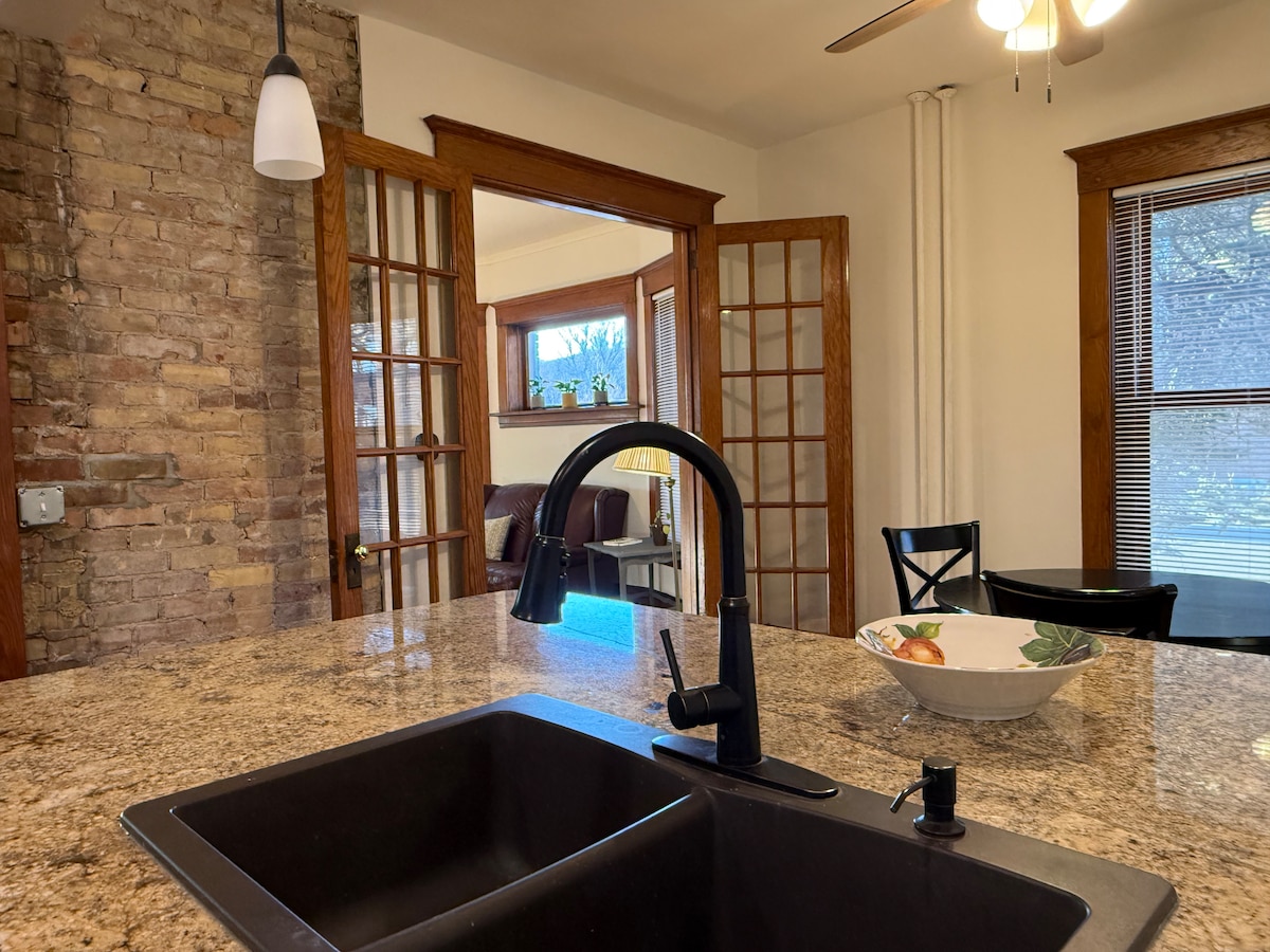 Sea cual sea la estación, disfrutarás de mi casa de principios del siglo XX en Duluth, a cinco minutos tanto del campus de la Universidad de Minnesota-Duluth como del College of St. Scholastica. En verano disfrutarás del patio privado rodeado de jardines. En las frescas noches de otoño, querrás reunirte junto al fuego. En invierno, escaparás de la nieve en la cálida sala de estar iluminada por la chimenea. En todas las estaciones, podrás reunirte en la cocina de granito blanco totalmente renovada para cocinar y compartir historias de tu día.