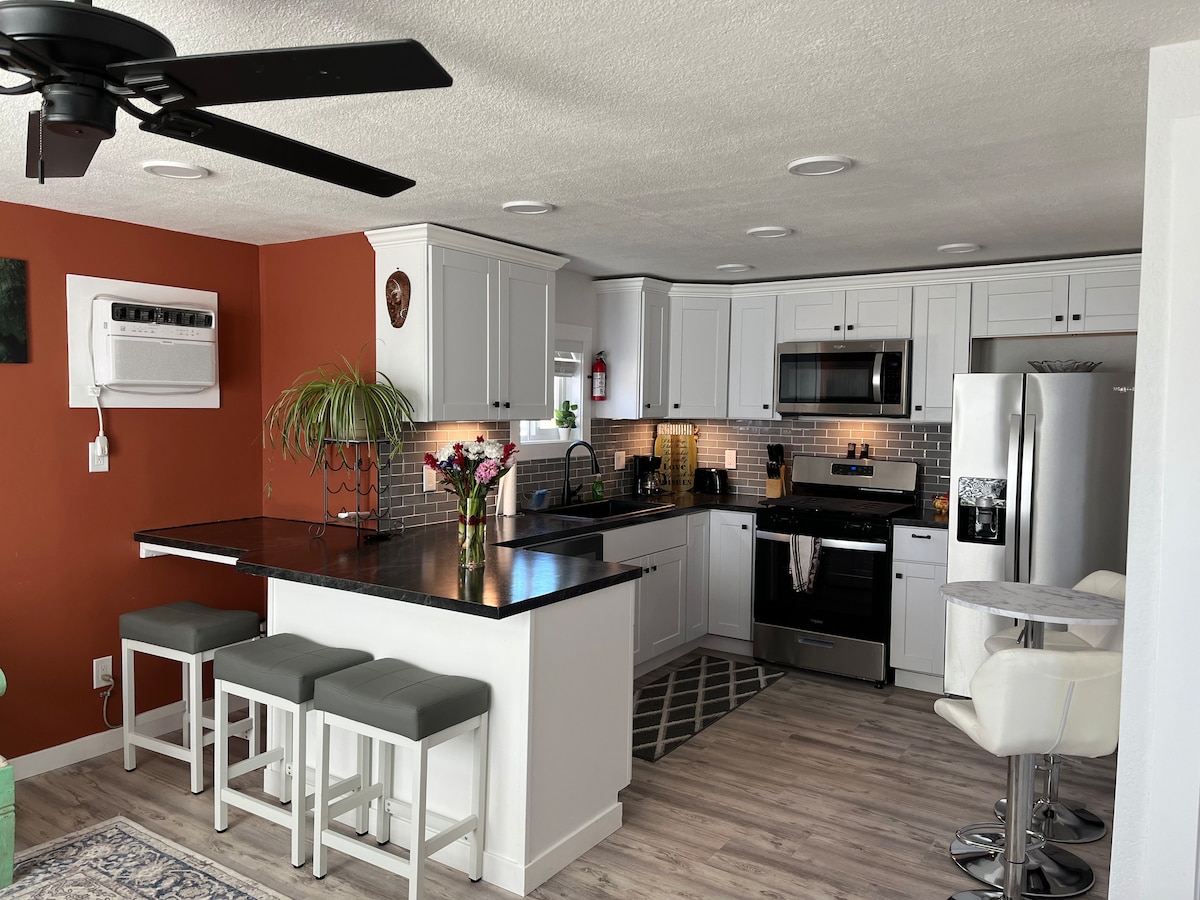 Disfruta de una experiencia de lujo en este céntrico apartamento. Recientemente renovado, superacogedor y limpio. Con chimenea de gas y excelente wifi. A solo dos manzanas del nuevo Indian Creek Plaza en el centro de Caldwell. Junto con varios restaurantes deliciosos y un cine, todo a poca distancia a pie. ¡Personalmente me encanta la música en vivo gratuita durante el verano en la plaza Indian Creek! Si estás aquí durante el invierno, ¡las luces navideñas junto al arroyo son una de las mejores y más grandes exhibiciones de la zona!