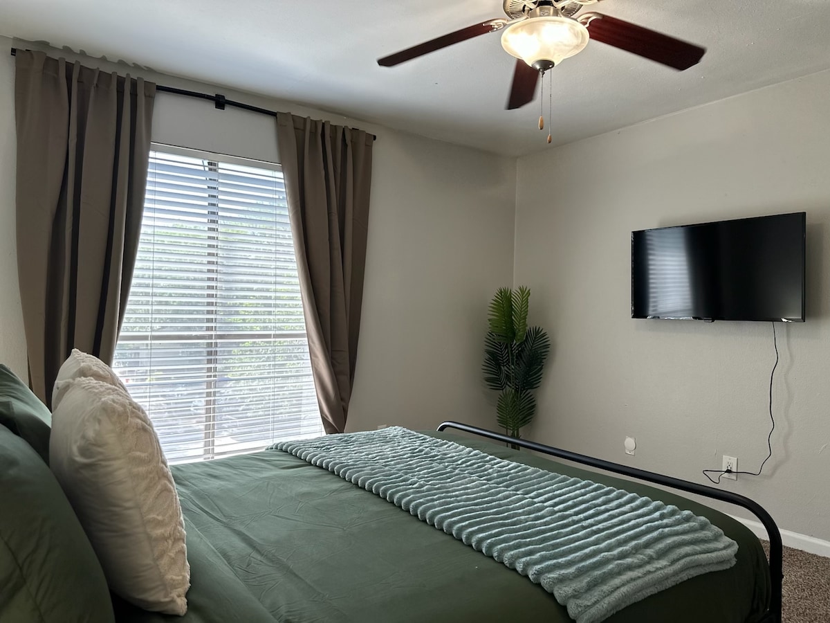 Escápate a este impresionante apartamento de lujo a pocos pasos del emblemático Gruene Hall. Perfectamente situado en el corazón del histórico Gruene, este apartamento de 1 dormitorio bellamente decorado ofrece todo lo que necesitas para una escapada inolvidable. ¿Viajas en grupo? Gestionamos varias unidades en este complejo y es posible que podamos alojar a grupos de 8 a 16 personas. ¡Envíanos un mensaje para conocer la disponibilidad y la reserva de varias unidades! 🏡 Sobre el espacio: Amplia sala de estar: disfruta de una acogedora sala de estar, muebles modernos