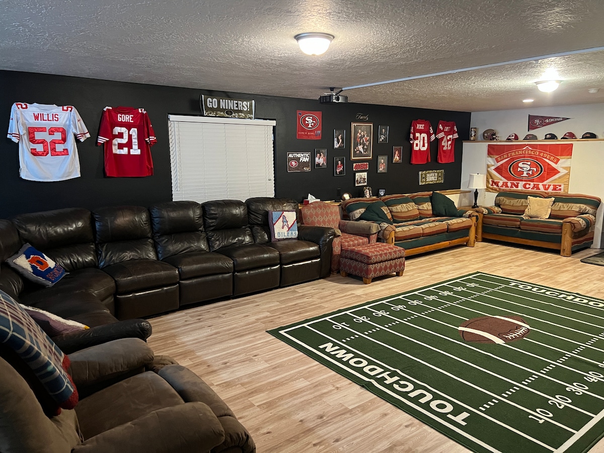 Sótano deportivo con proyector, jacuzzi y mesa de billar