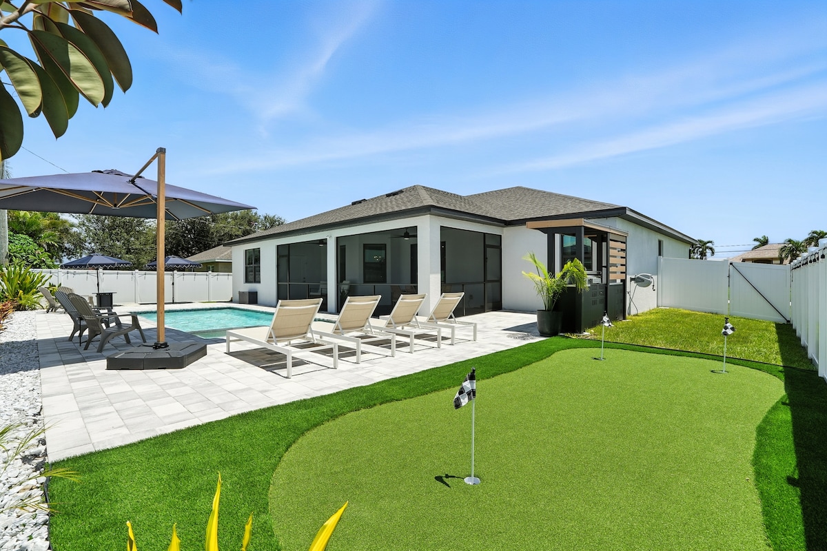 - A 5 minutos del centro de Cape/a 10 minutos de Yacht Club Beach, a 20 minutos de Causeway Beach, a 25 minutos de Ft Myers y Sanibel Beach. - Patio trasero vallado tropical con piscina, bañera de hidromasaje, fogón de gas, silla colgante, hamaca y parrilla Blackstone - Elementos básicos de playa, tablas de boogie, sombrillas, vagón de playa, nevera y sillas. - Juegos de mesa, ping-pong, corn-hole, dardos, 2 kayaks+ chalecos salvavidas. - 2 bicicletas y cascos de Beach Cruiser - Patio cubierto cerrado relajante + luces de cuerda, letrero de neón y pared de hierba - Acceso al canal para el lanzamiento de kayaks a 5 minutos.