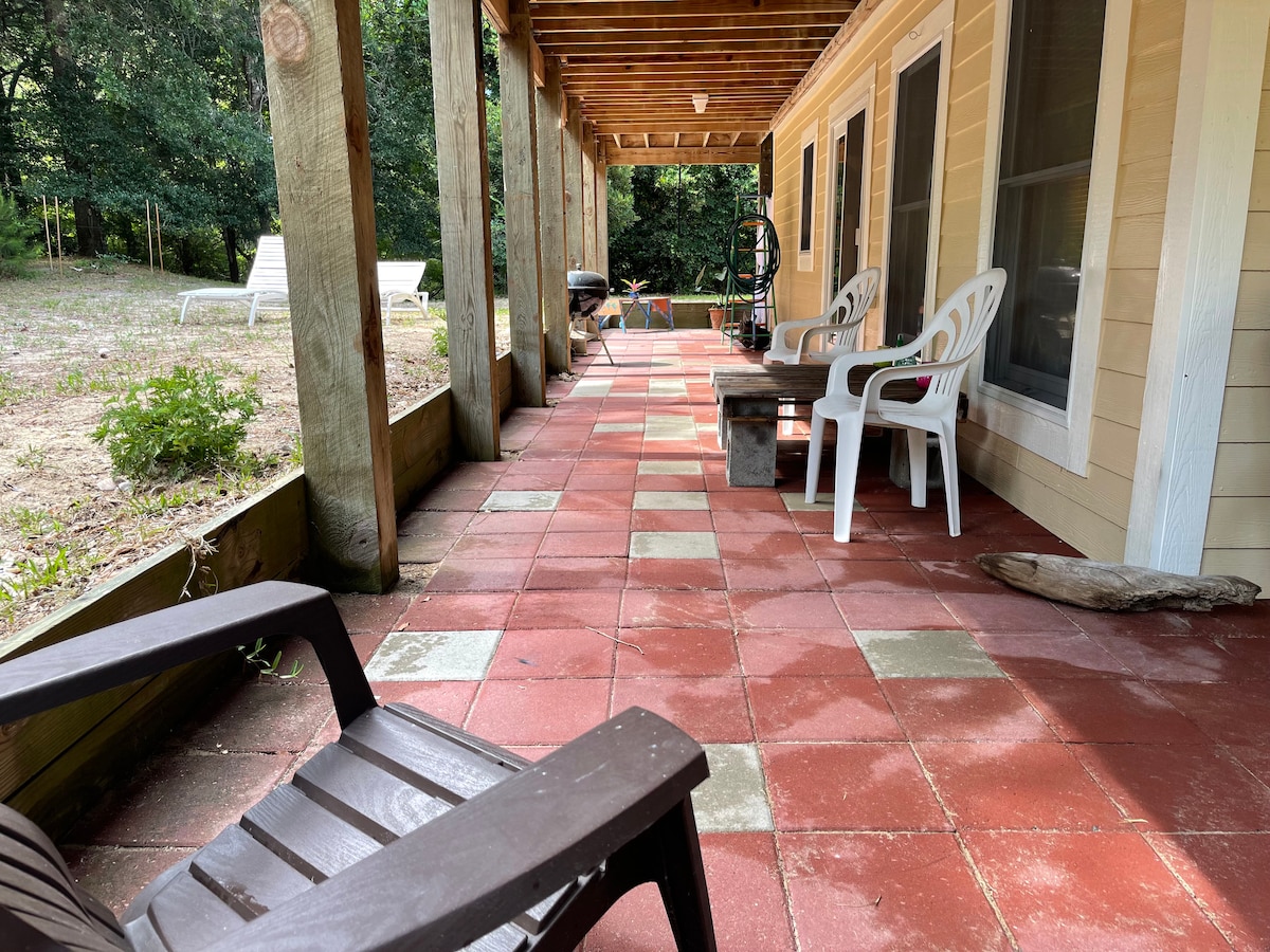 ¡Privado, tranquilo y romántico! SherrysPlace está detrás del bosque marítimo de Buxton Woods. Es literalmente el patio trasero y es tuyo para disfrutar. Senderismo, ciclismo, observación de aves, todo en tu puerta. Con acceso a la playa local a poca distancia en bicicleta (menos de 3 millas). La luz del faro del cabo Hatteras brilla a través de las copas de los árboles por la noche, una de nuestras cosas favoritas. ¡Pero por favor lee nuestras evaluaciones! ¡Nuestros huéspedes lo dicen mejor! Deja que SherrysPlace sea tu hogar... Para tu información: los músicos son bienvenidos, ¡nos gusta! :)