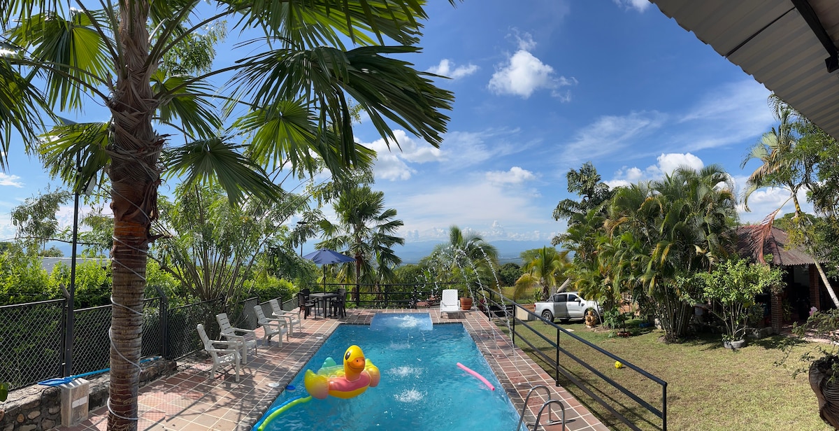 Casa Campestre con amplias zonas verdes, aire acondicionado, cocina, BBQ, Piscina, avistamientos de AVES, ubicada en pleno sector turístico, agradable y confortable estadía.