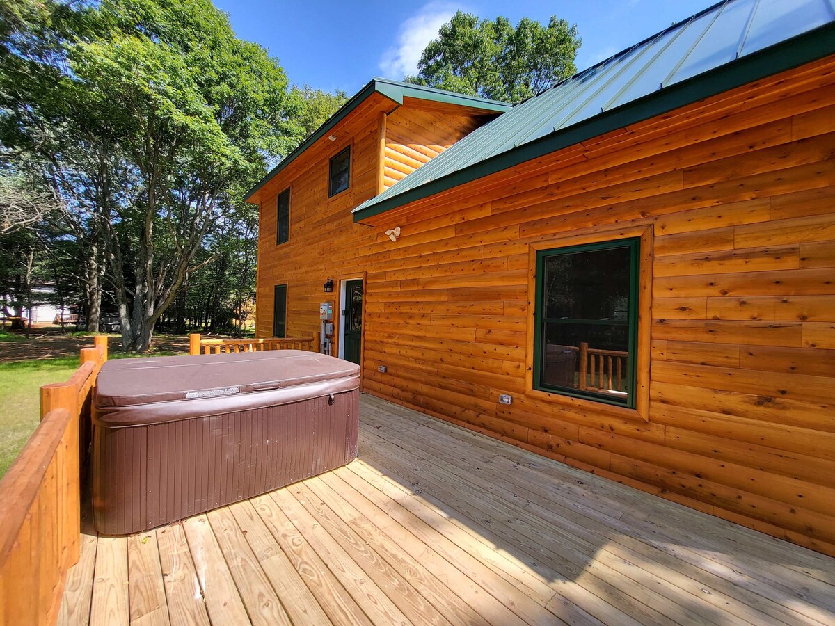 Cabaña de madera, sala de juegos, jacuzzi, ¡cerca del lago!