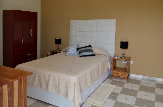 Es un apartamenento independiente amplio. Con un dormitorio con dos camas, (una grande y otra más pequeña), aire acondicionado, caja fuerte, perchas para la ropa y televisor. Un baño con agua fría y caliente; cocina equipada con todo para la elaboración de alimentos (microondas, cafetera, tostadora, ollas, fogón de gas, refrigerador), una pequeña mesa plegable y tres taburetes para comer, uso de la lavadora. Una terraza común rodeada de plantas con sillones, mesa y sillas y un hermoso jardín.