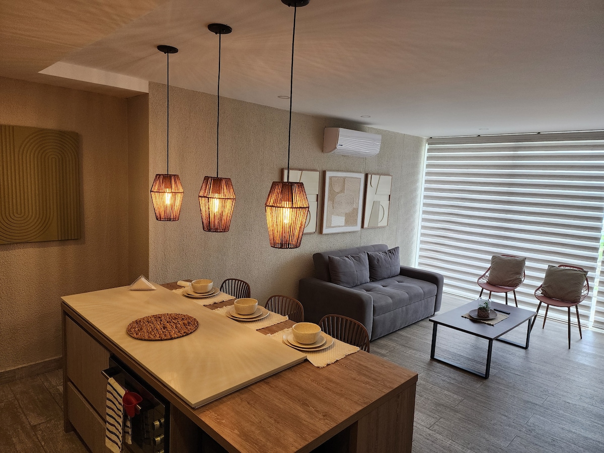 Exclusivo Apartamento en el sector de Cielo Mar de Cartagena. A 10 minutos del aeropuerto y a 3 cuadras de la playa, cerca hotel Las Americas. Capacidad para maximo 3 personas. Un espacio acogedor, con decoración minimalista, elegante y luminoso. Podrás disfrutar del jacuzzi al interior del apto y las zonas húmedas del edificio.