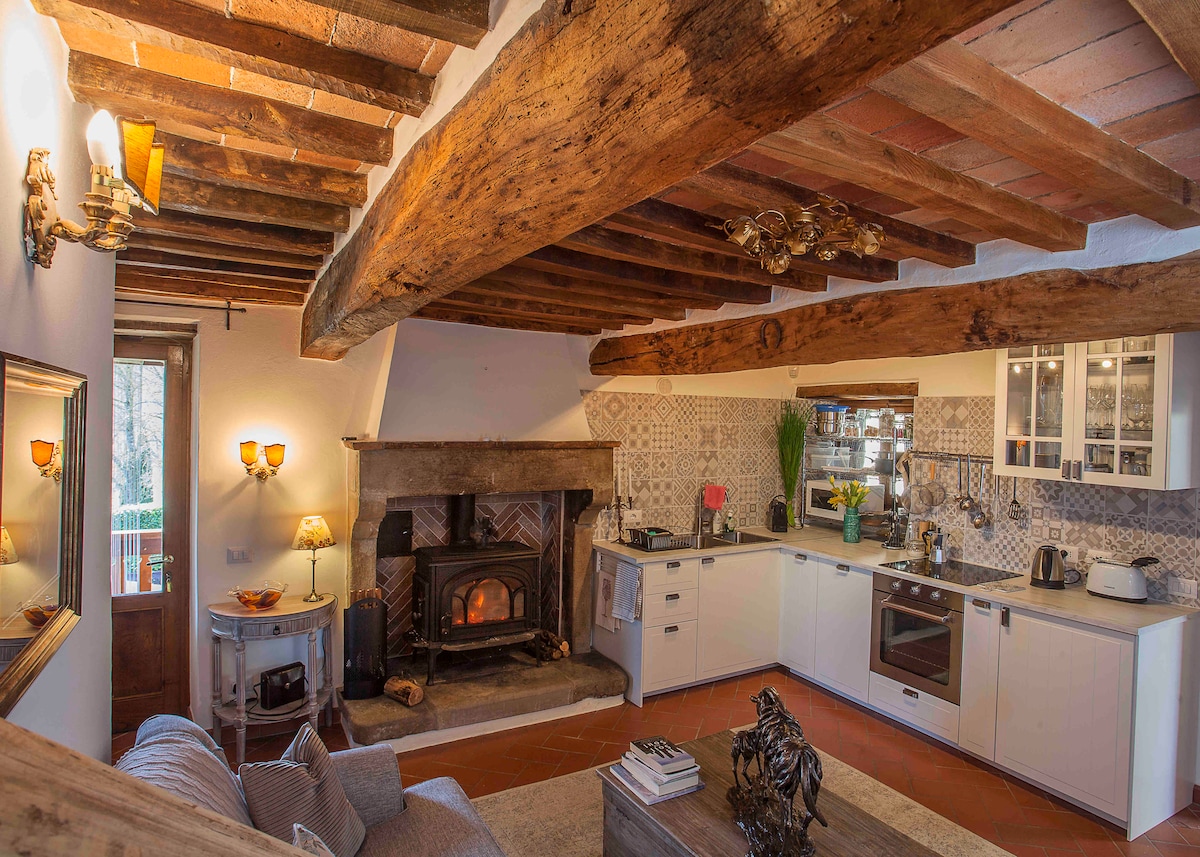 Explora la Toscana en un apartamento de 2 dormitorios y 2 baños bellamente decorado con todas las comodidades y una chimenea de leña. Bienvenido a tu lujoso hogar en el corazón de la Toscana, Italia, donde cada momento será una nueva aventura. Este apartamento bellamente diseñado y bien amueblado se encuentra en una casa de campo restaurada, rodeada de olivares, viñedos y colinas, ofreciéndote lo mejor de la vida italiana.