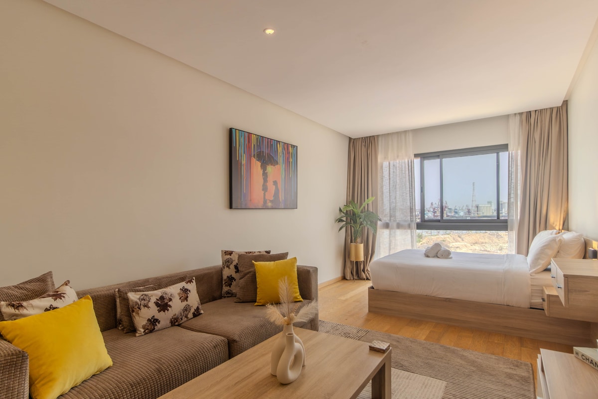 Disfruta de una vida refinada en The Corniche Escape, un tranquilo y elegante apartamento de 2 dormitorios en la Corniche de Casablanca, frente al mar y cerca de la mezquita Hassan II. Ideal para viajes de negocios o de placer, ofrece un salón luminoso, ropa de cama de primera calidad, una cocina totalmente equipada, vistas al jardín, wifi de alta velocidad y aparcamiento seguro, todo dentro de una moderna y exclusiva residencia frente a la playa.