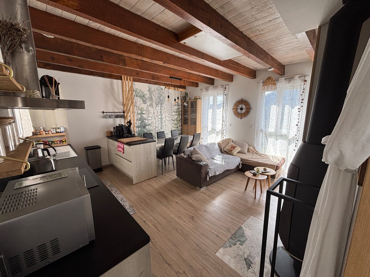 La casa está situada en plena naturaleza, se puede disfrutar de la paz y la tranquilidad del lugar, ir de excursión y visitar muchos lugares de interés. Casa rural reformada de 18 m², con aire acondicionado, una sala de estar (TV), una cocina americana (nevera, 2 fogones, horno COMBINADO, cafetera SENSEO, etc.), un dormitorio en el altillo, un baño con ducha y WC, una terraza de 20 m² y una pequeña zona de césped, con vistas al río y al valle.