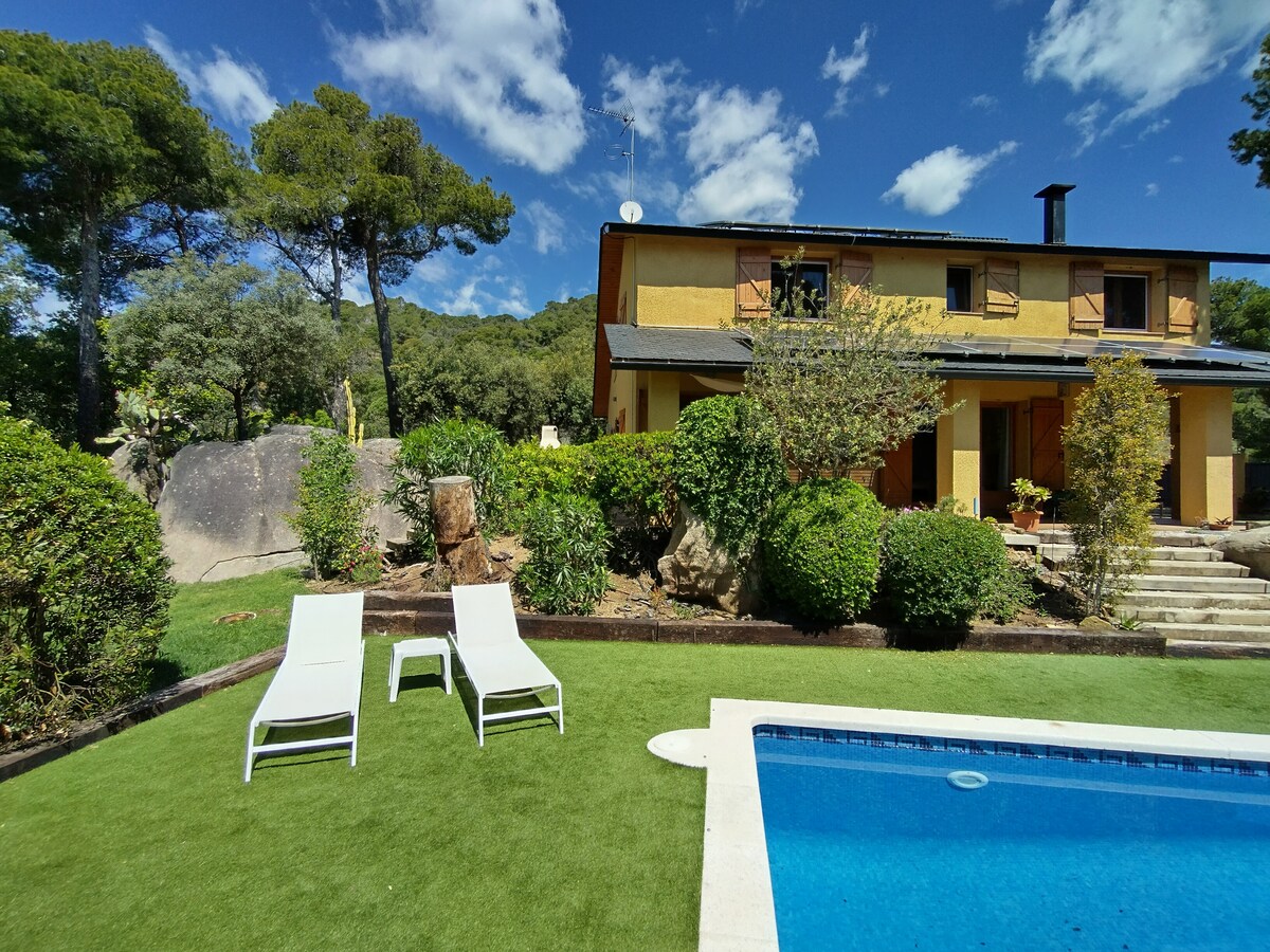 Te ofrecemos esta casa de 4 habitaciones y de uso exclusivo para nuestros huéspedes, donde el mar y la montaña convergen. Se encuentra en el parque del Montnegre y a tan solo 10 minutos de la playa. Está muy bien comunicada con Barcelona, ¡a tan solo 40 minutos en coche! Baños en la piscina, barbacoa, relax, vistas de ensueño.. Dispone de aire acondicionado en tres de las estancias para el verano y calefacción central para el invierno. Reg: ESFCTU00000811300035044900000000000000HUTB-063263-043