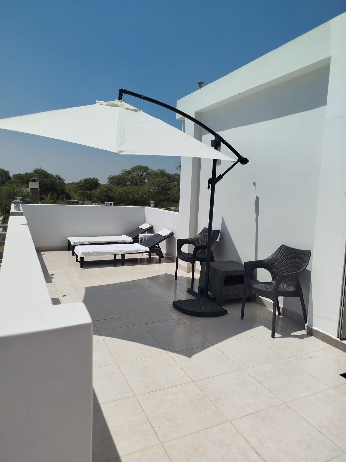 ¡Tu refugio en las alturas! Habitación privada en 3er piso con Acceso independiente, ideal para parejas o viajeros que trabajan: Cama de 2 Plazas - ultra confort+ velador Escritorio para laptop + WiFi Baño privado con ducha eléctrica Terraza amplia con sombrilla, sillas cómodas, mesa de comer y vista relajante. Seguridad ideal y buena ubicación (cercano a la avenida principal y a diversos comercios). Ambiente tranquilo, perfecto para descansar o trabajar con inspiración. ¡Te esperamos!