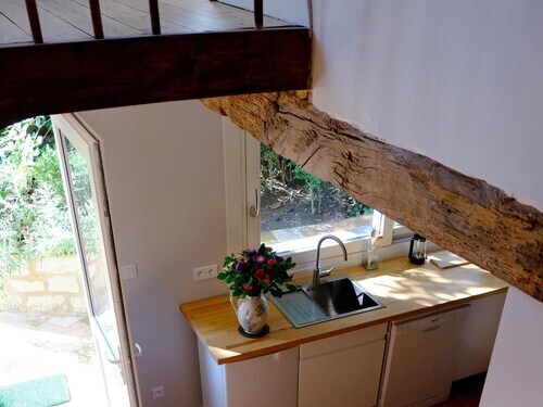 Loft de 50 m², recién reformado, muy acogedor y luminoso, en el segundo piso de una casa antigua, con carácter, situada en el corazón de un pueblo clasificado, en una calle típica y tranquila. Cocina equipada, zona de estar con pantalla plana, baño con bañera en isla, aire acondicionado...