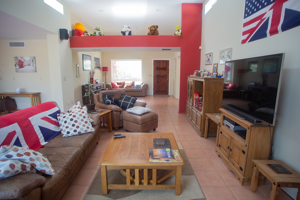 Casa de adobe histórica de 1946 en el centro de la ciudad con vibrantes colores y decoración de estilo mexicano. Servicios modernos que incluyen aire acondicionado/calefacción sin conductos y cocina completa con electrodomésticos nuevos. Cama tamaño king y dos camas individuales, todas con espuma viscoelástica. Televisión en todas las habitaciones. Juegos de mesa y algunos DVD incluidos. El baño único al aire libre ES el segundo baño. Mucho espacio de estacionamiento para vehículos recreativos o remolques. Lo sentimos, no se permiten bodas ni eventos. Licencia de TPT de Arizona n.º 21330071