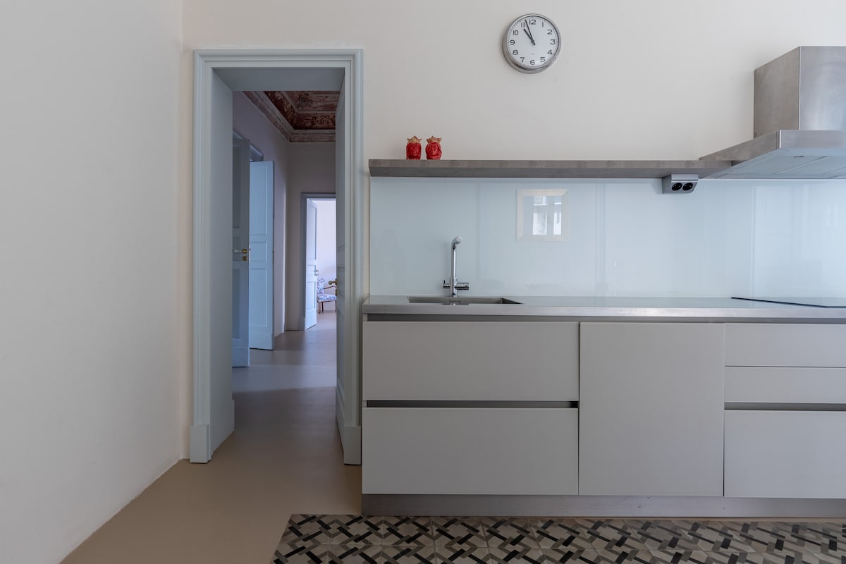 Forte Santa Barbara es un elegante apartamento de 90 m² en la primera planta con una entrada semiindependiente, en un edificio histórico renovado en el corazón de Catania. Los suelos originales, los techos abovedados, las dos terrazas y una espectacular ducha doble ofrecen encanto y comodidad. La calle es peatonal porque debajo del edificio se encuentra la evocadora Tricora romana (siglos II-IV d. C.): aquí literalmente dormirás por encima de la historia de la ciudad.