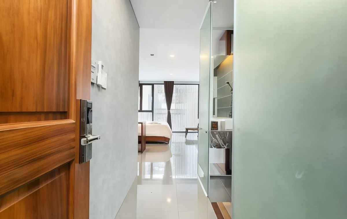 ¡Nuestro estudio es perfecto para tu próxima estancia en Saigón! El interior tropical está inspirado en la famosa arquitectura de Hoi An. Situado en el centro de Saigón, a 10 minutos a pie de la zona de mochileros. Disfruta de vistas celestiales del centro de Saigón, especialmente por la noche. ¡Incluye cocina completa y baño con ducha de efecto lluvia y bañera de pie! Las comodidades incluyen: o Cama tamaño king de calidad hotelera o TV con Netflix o Altavoz bluetooth Marshall o cafetera totalmente surtida o Lavadora de carga frontal o inodoro con bidé