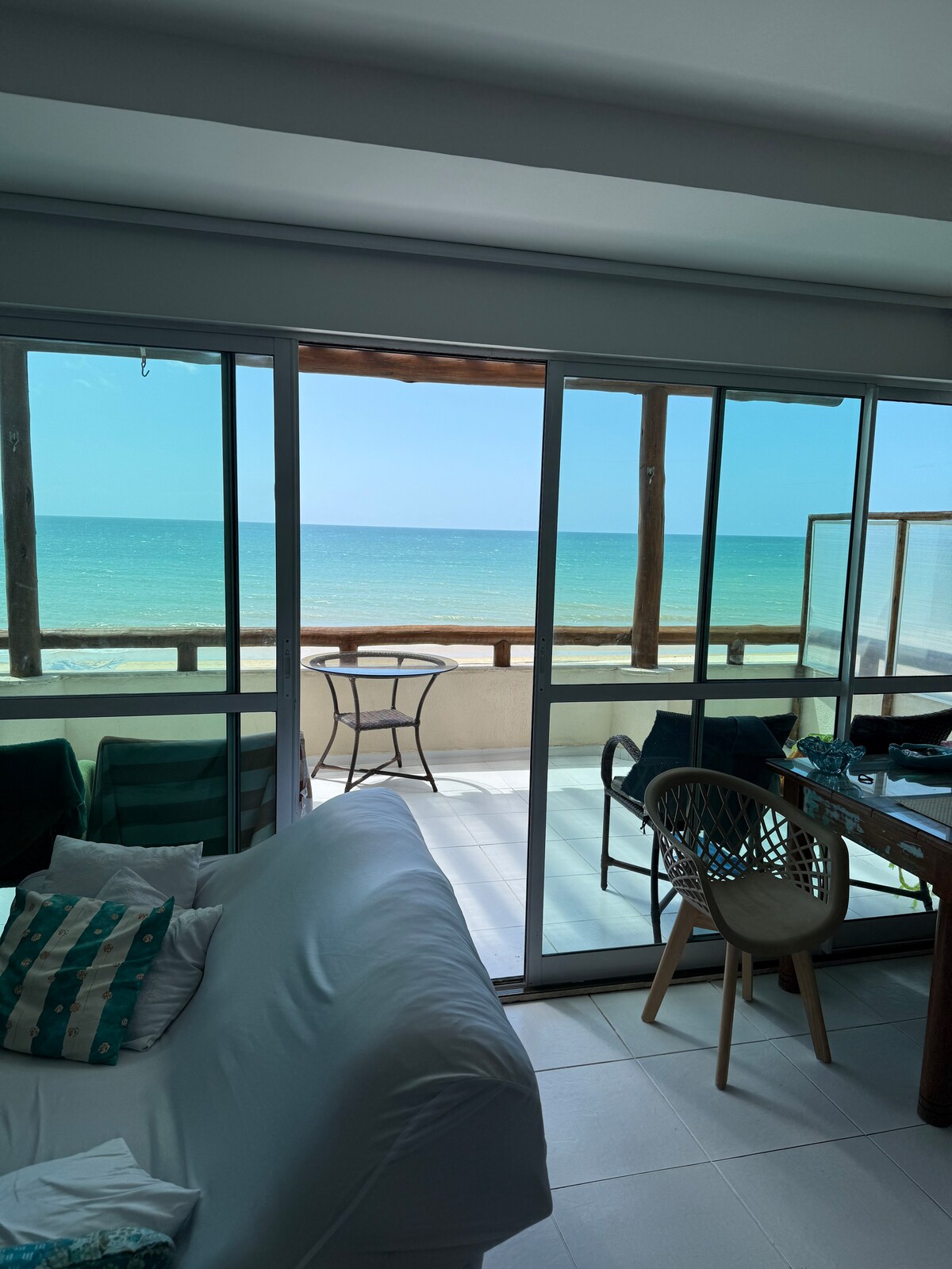 Alójate en el lugar más cercano a la playa 🏖️ de Cumbuco. Abre las ventanas🪟 y disfruta de la brisa del mar 🌬️y del sonido de las olas 🌊directamente desde tu cama🛏️. Amplio apartamento (119 m²) directamente en la playa en Cumbuco. 2 dormitorios, 2 baños, gran salón todos con aire acondicionado y gran terraza con acceso directo a la piscina. Perfecto para estancias largas con lavadora europea, nevera grande y taquilla privada de cometas. Disfruta de unas vistas impresionantes y relájate en tu terraza privada