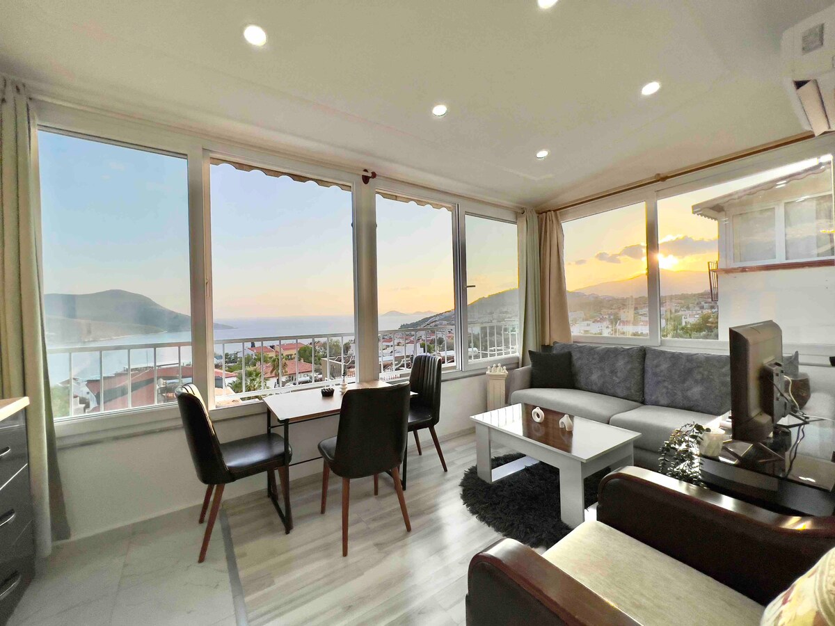 Valoración media de 4,91 sobre 5, 58 evaluacionesEsinti Apart con vistas al mar y a la naturaleza en Kalkan