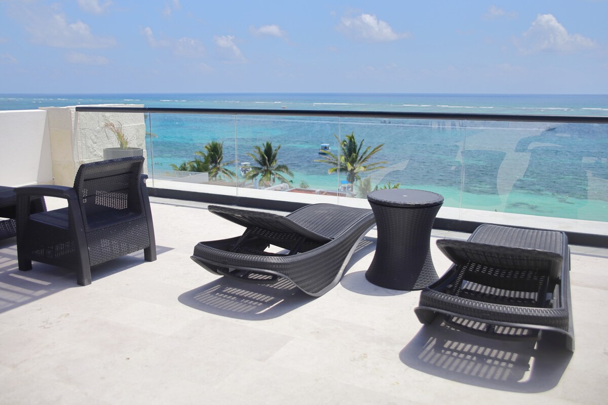 Departamento en planta baja, en Puerto Morelos ubicado a solo 3 minutos de la playa caminando. Una habitación con cama queen size y un sofa cama en la estancia. Acabados de lujo en el departamento, y cuenta con un rooftop con una vista al mar caribe espectacular, alberca de 12 mts de largo y área de pergolado para disfrutar la vista con un vino o una cerveza. Restaurantes con excelente gastronomía a unos pasos del edificio.