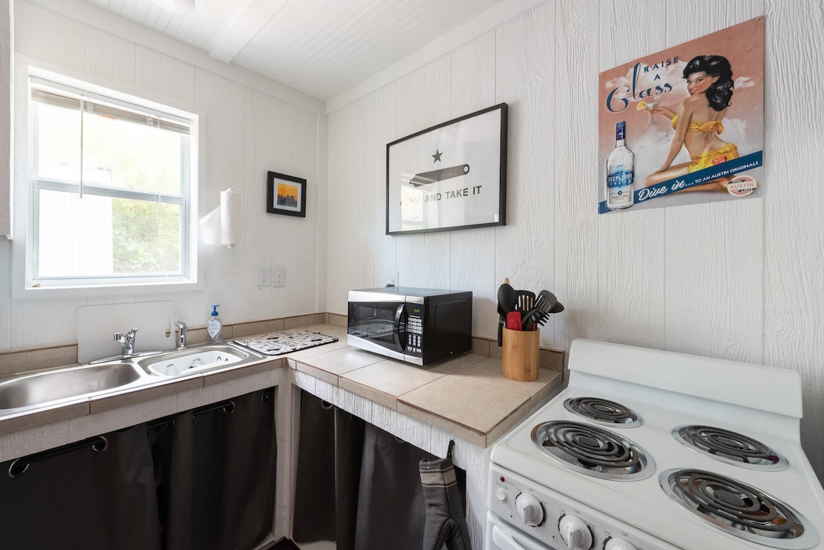 Estudio aislado en Zilker: cama tamaño king, luminoso y espacioso