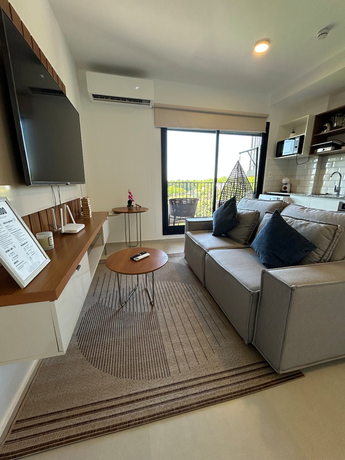 Moderno departamento en el corazón de Asunción, a solo 100 metros de los mejores shoppings, restaurantes y hoteles. Totalmente equipado, ofrece sala de estar luminosa, cocina moderna, dormitorio con cama queen y baño completo. El edificio cuenta con increíbles amenidades: gimnasio, sala de juegos, piscina semiolímpica y estacionamiento privado. Perfecto para quienes buscan comodidad, lujo y una ubicación inmejorable. ¡Reserva y disfruta de Asunción al máximo!