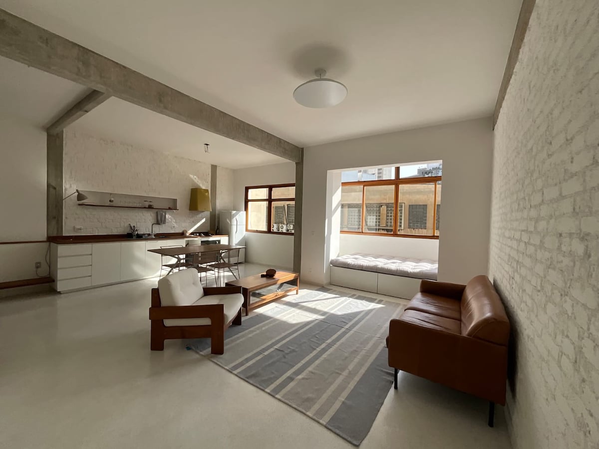 Bem vindo ao icônico Edifício Copan no pulsante Centro Histórico de São Paulo. Um studio estiloso e completo, ideal para quem quer viver uma experiência autêntica Paulistana! - Internet fibra de alta velocidade (500Mbps) - Ar condicionado - Cozinha equipada (fogão, microondas, frigobar) - Localização central a 300m do metrô República - Colchão Emma novinho, densidade equilibrada - Self checkin e self checkout com fechadura eletrônica - Alexa conectada ao Spotify Premium