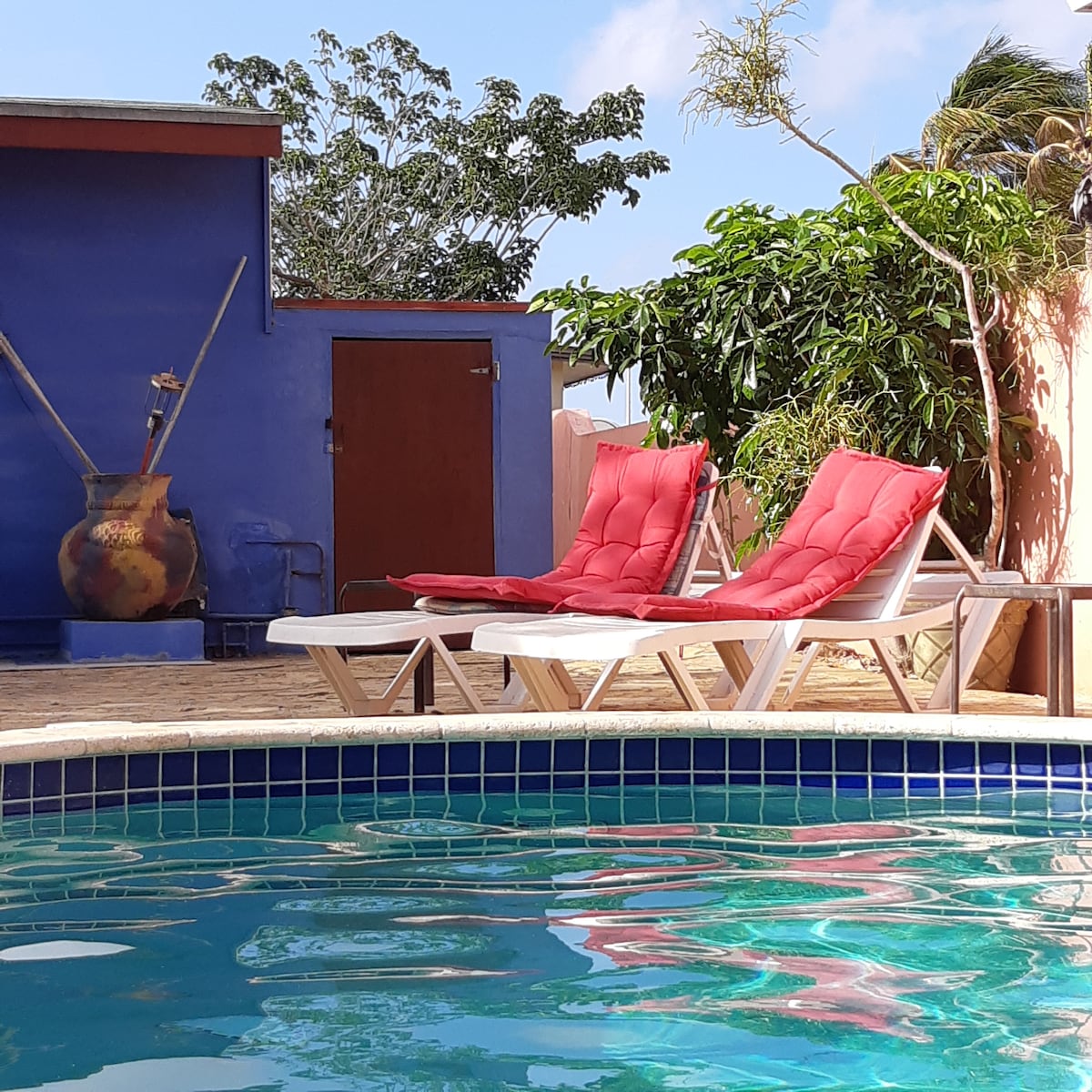 Acogedor apartamento-estudio con plaza de aparcamiento designada, entrada privada y patio delantero rodeado de naturaleza en un barrio tranquilo. A 15 minutos a pie de la capilla de Alto Vista, una zona histórica y tranquila situada en la costa norte de la isla. A poca distancia en coche de Eagle Beach, Arashi Beach, Palm Beach y Boca Catalina. El apartamento estudio tiene sus propios platos de cocina, tumbonas, toallas de playa, nevera y equipos de esnórquel.