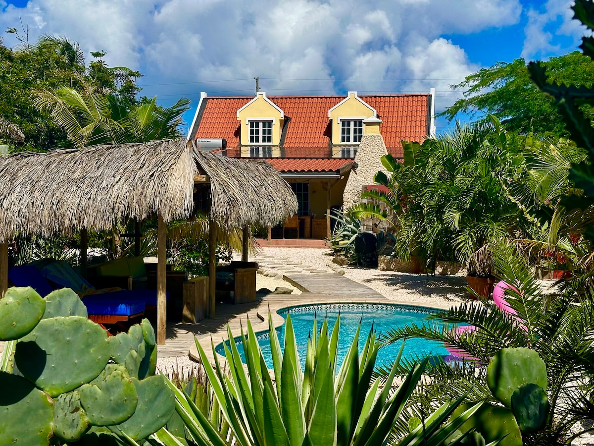 Cadushi Villa (cactus) fue construida pensando en la resistencia del cactus. Una villa 100 % privada ubicada en plena naturaleza, con una amplia terraza que rodea un jacuzzi para 5 personas con una hermosa vista de una cerca de cactus al fondo, conocida localmente como «Trankera». Disfruta de una taza de café por la mañana o de una tarde relajante con una hermosa puesta de sol acostado en una hamaca en la terraza mientras asas en la parrilla. Relájate en el acogedor jardín pequeño y consigue un bonito bronceado.