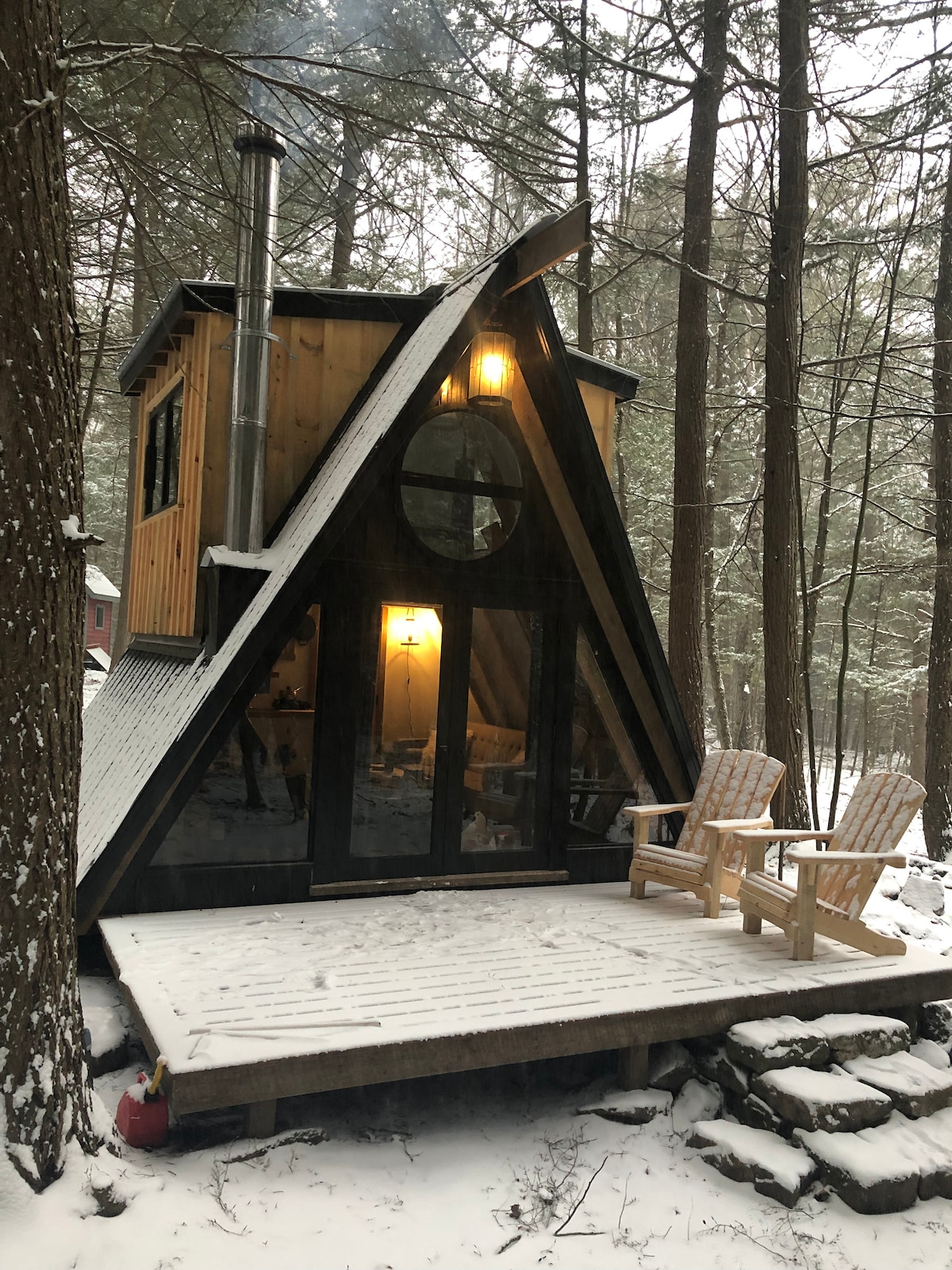 Bienvenido a la cabaña «The Hemlock» Una estancia única situada a pocos minutos del histórico Perth, Ontario. El Hemlock se encuentra en más de 160 acres de bosque privado y natural. Disfruta de acceso al lago en 3 estaciones para hacer kayak y piragüismo. Rutas de senderismo, raquetas de nieve, exploración, etc. durante todo el año. ¡Hermoso paisaje en un entorno tranquilo y privado, relájate y desconecta junto al fuego! ¡Estamos deseando que vengas! (: