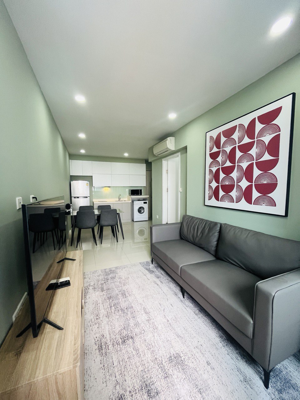 Apartamento de 2 dormitorios bien diseñado y acogedor con suelo de madera coreana y una moderna cocina occidental equipada con horno y lavavajillas integrados. Aire acondicionado de techo de gran capacidad, balcón junto a la sala de estar equipado con lavadora y tendedero, y amplio espacio de almacenamiento integrado en todo el alojamiento. Totalmente amueblado, ideal para estancias cortas y largas. Situado en un piso alto con excelentes vistas abiertas, los residentes disfrutan de servicios de primera calidad que incluyen gimnasio, piscina y zona para correr.