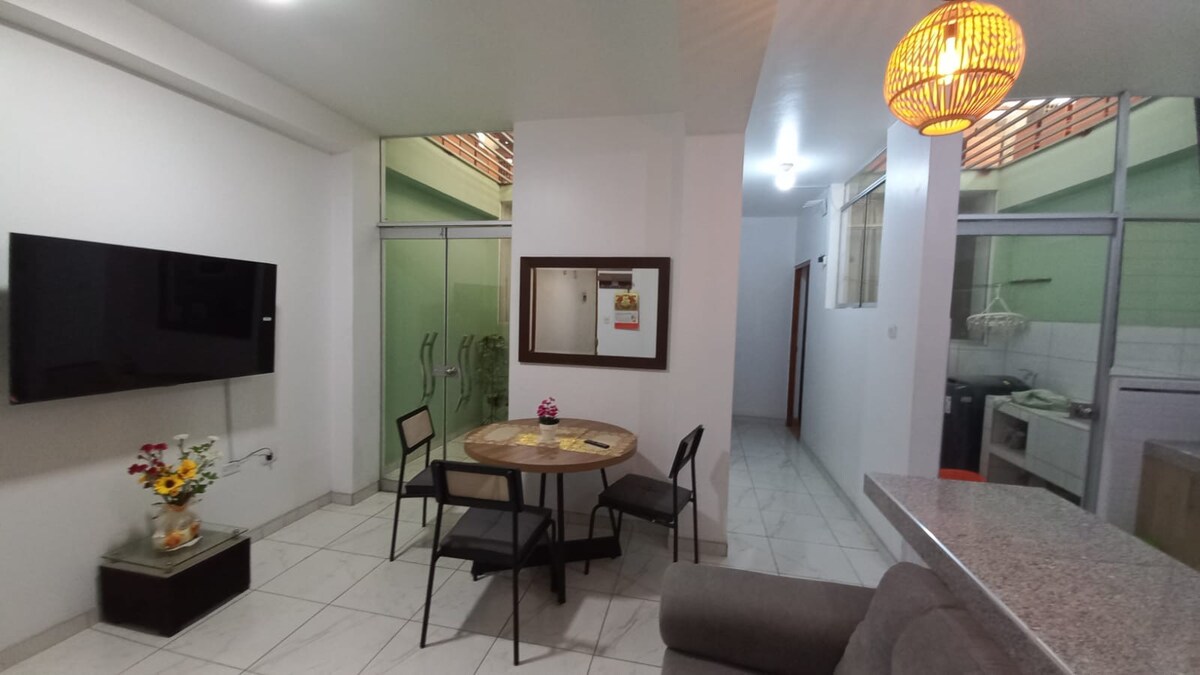 Relájate en este espacio tan tranquilo y elegante. Departamento premium de estreno 201 Mini departamento acogedor para parejas o familias pequeñas, ubicado en zona residencial, a pocos minutos del centro de huaral cerca de plaza vea plaza vea y a 1 km megaplaza; y a 2 km de recreos campestres.