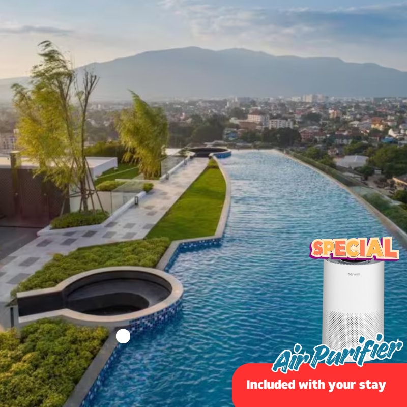 Astra Sky River 3 dormitorios para 5 personas. Lujosa piscina infinita más larga y hermosa de Tailandia + la puesta de sol más hermosa con vistas a la montaña Doi Suthep + oficina compartida + cerca de la ciudad antigua