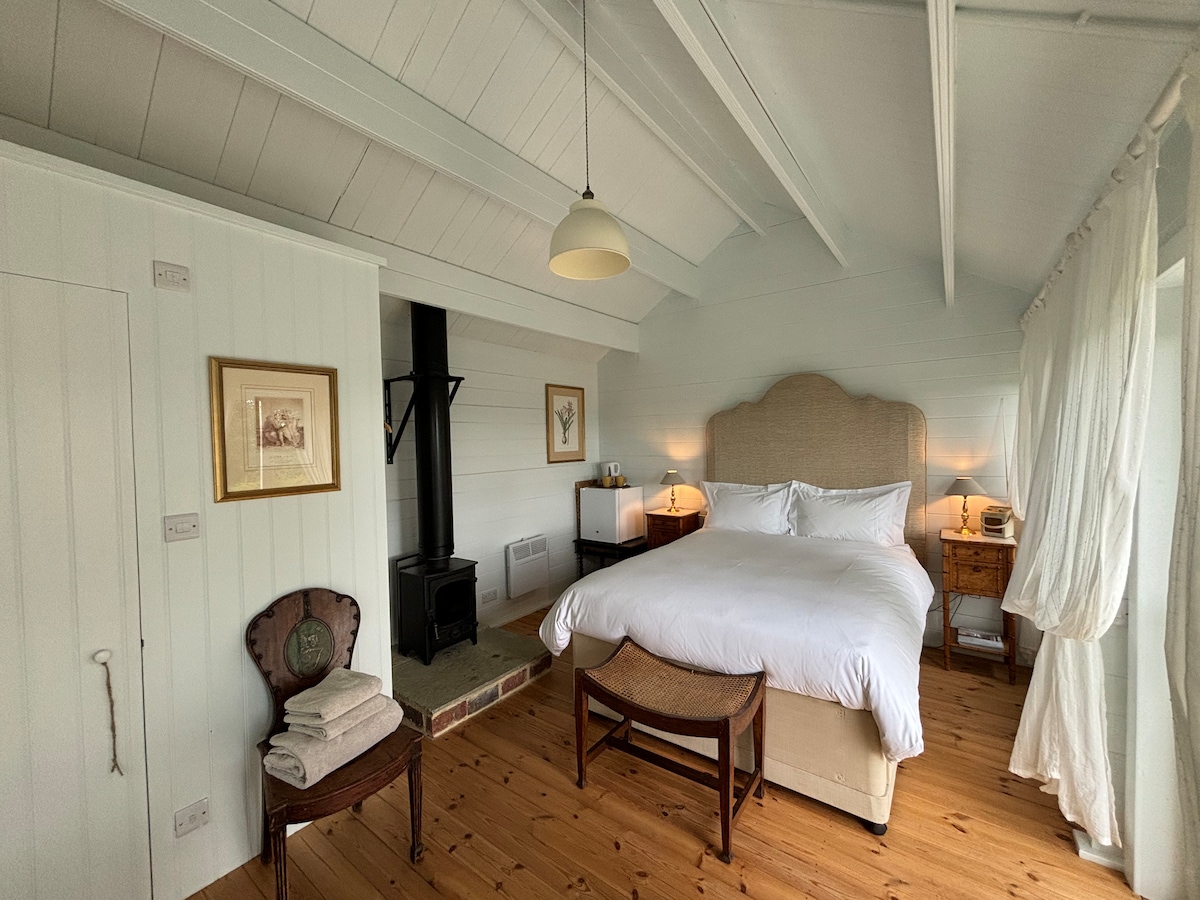 Nos encantaría darte la bienvenida a nuestro edificio con estructura de madera (¡una vez fue un cobertizo de cerdos!) con muebles modernos, suelos de madera y techos altos. 1 dormitorio doble y 1 dormitorio con dos camas individuales. Cocina totalmente equipada, wifi, TV Freeview, ducha a ras de suelo. Ubicación tranquila en la campiña de Kent, situada en medio acre de jardín, a 1 milla de Tenterden. Ideal para escapadas de fin de semana, vacaciones en familia y un lugar ideal para reuniones de pequeñas empresas.