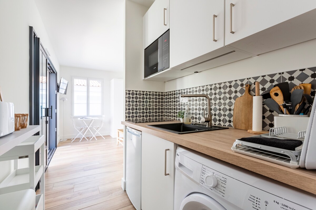 Ideal si quieres hacer todo a pie en Fouras. Nuestro estudio se encuentra entre el aparcamiento público gratuito y la calle peatonal. En 2 minutos caminando se llega al paseo marítimo y luego tomar una copa o comer en las terrazas con vistas al Fort Boyard y a las 3 islas. La playa principal es accesible a 3 minutos a pie. Las otras playas requieren 5 y 10 minutos. Tenemos la sala de té de Fouras, nuestro vecino es la panadería...y su vecino es un pizzaiolo. Estaremos muy alegres de recibirte.
